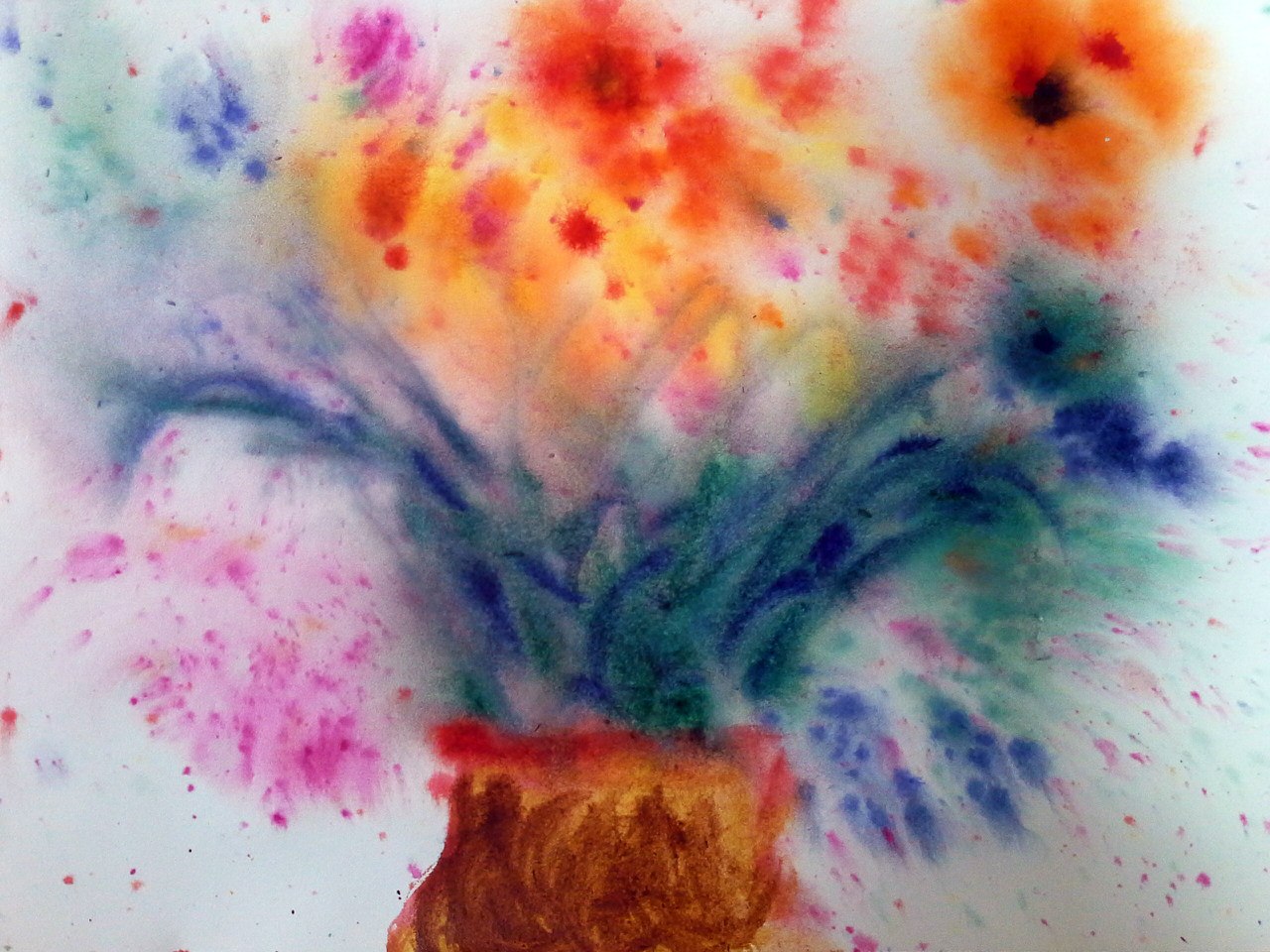 Эту технику любят и дети, и взрослые. Успокаивает неторопливый процесс растягивания и размазывания пластилина пальцами или ладошками по шершавой акварельной бумаге, смешивания цветов, когда нужно приложить хоть небольшое, но физическое усилие. А какие фантастические шедевры появляются совсем непреднамеренно! Чтобы их увидеть, мы обращаемся к воображению, включая позитивные эмоции.