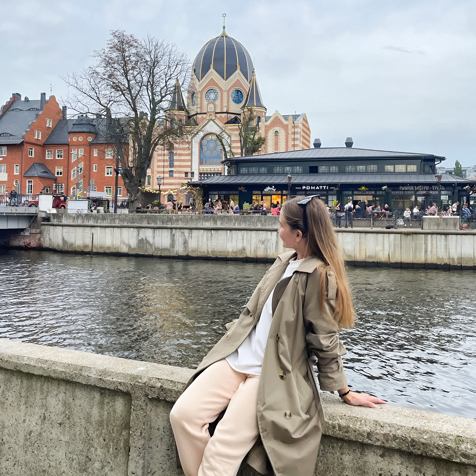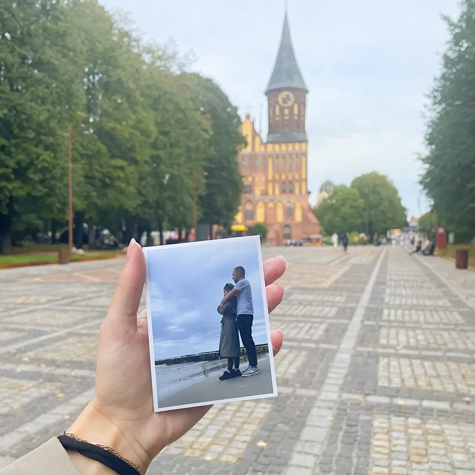 На следующий день поехали в центр Калининграда — узнать, как выглядит район Рыбной деревни в дневное время. На площади возле кафедрального собора можно было распечатать фото в автомате за 150 ₽. Сейчас оно висит дома на холодильнике.