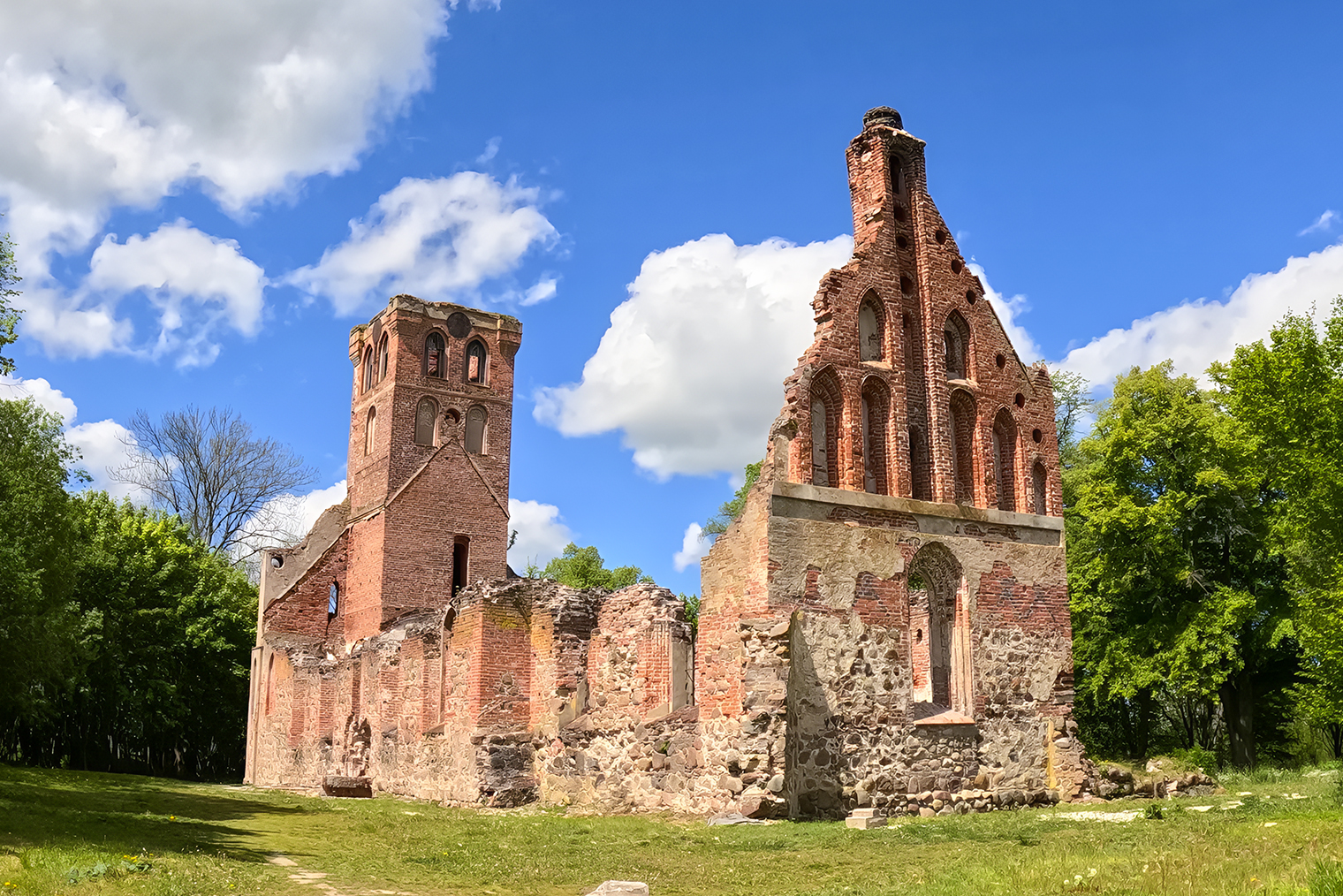 После Куршской косы свернули к Советску, ехали по проселочным и размытым лесовозным дорогам. Пару раз толкали велосипеды по рапсовому полю, переходили старинный деревянный мост и перетаскивали «коней» через мелиорационные каналы. По пути заехали в средневековые замки, переночевали на диком пляже с видом на море, покормили козу рядом с кирхой в поселке, посмотрели на Литву через реку Неман, встретили трех оленей, пару зайцев, одного бобра и бесчисленное количество цапель.