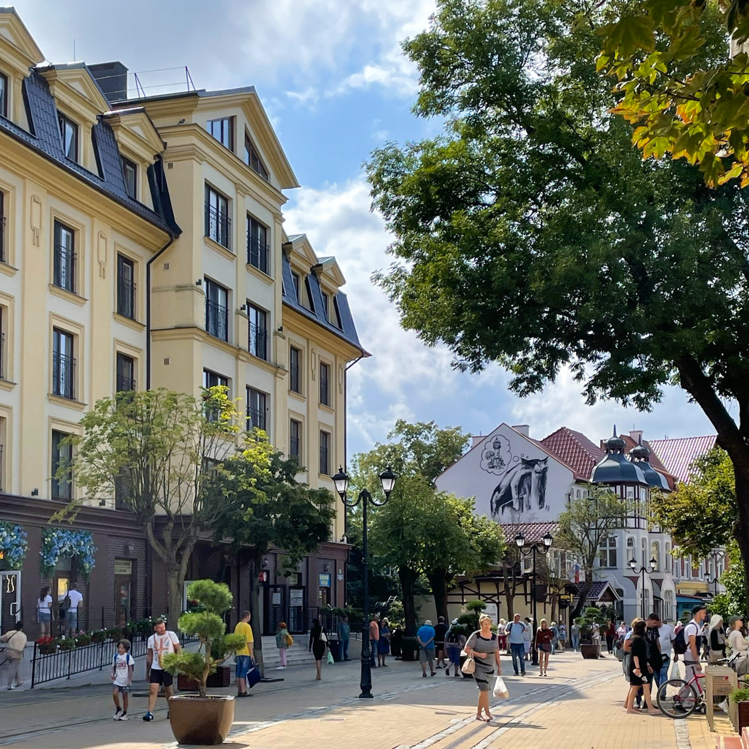 На следующий день после прилета направились к Балтийскому морю — в Зеленоградск, который до 1946 года носил название Кранц. Не зря его называют городом котов: они повсюду. Для них на Курортном проспекте есть свой светофор.