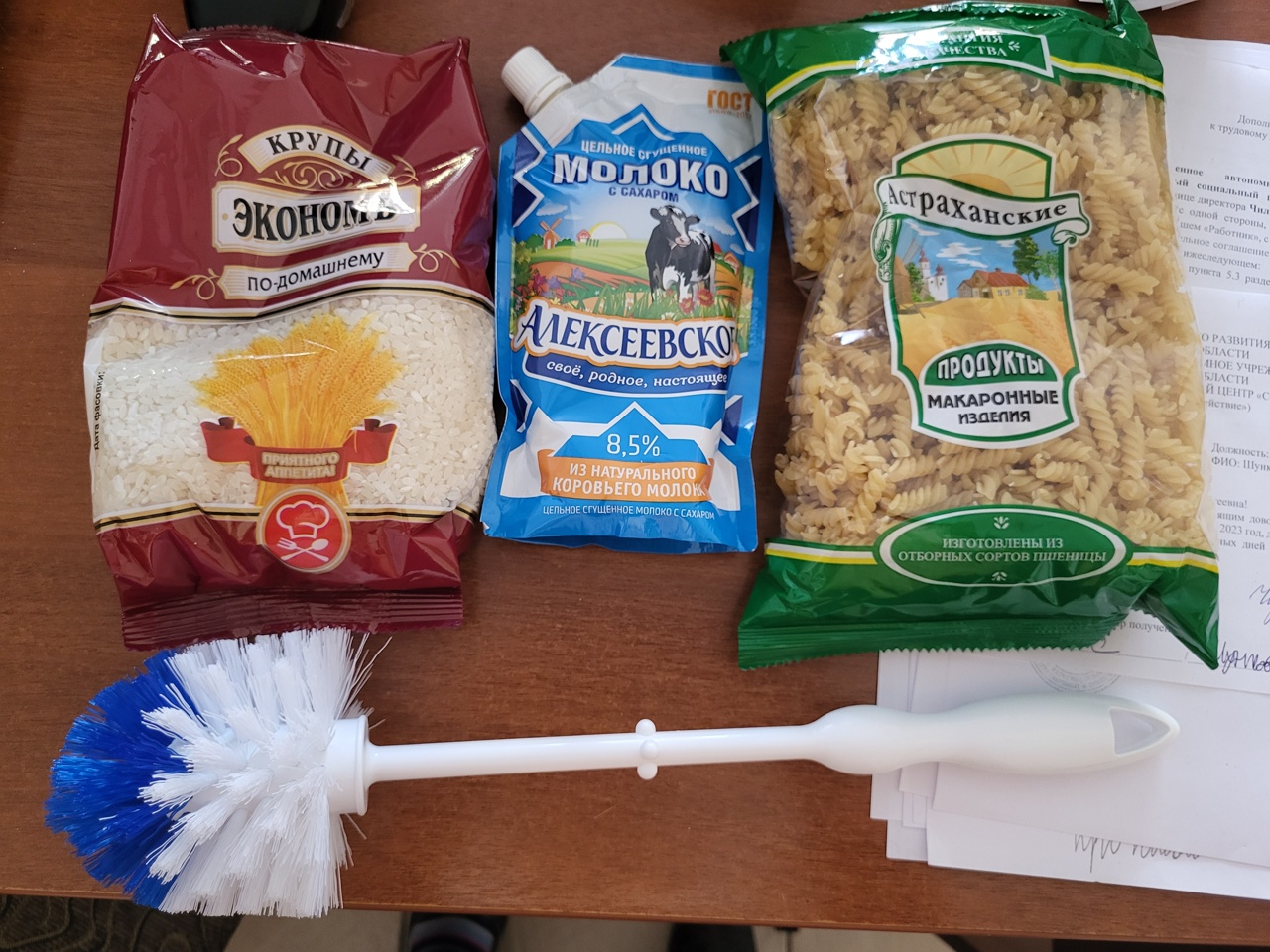 А теперь про ёршики. Нам действительно подарили их на 8 марта вместе с макаронами и крупами. И тогда я окончательно убедилась, кем руководство считает женщин, которые работают в центре.