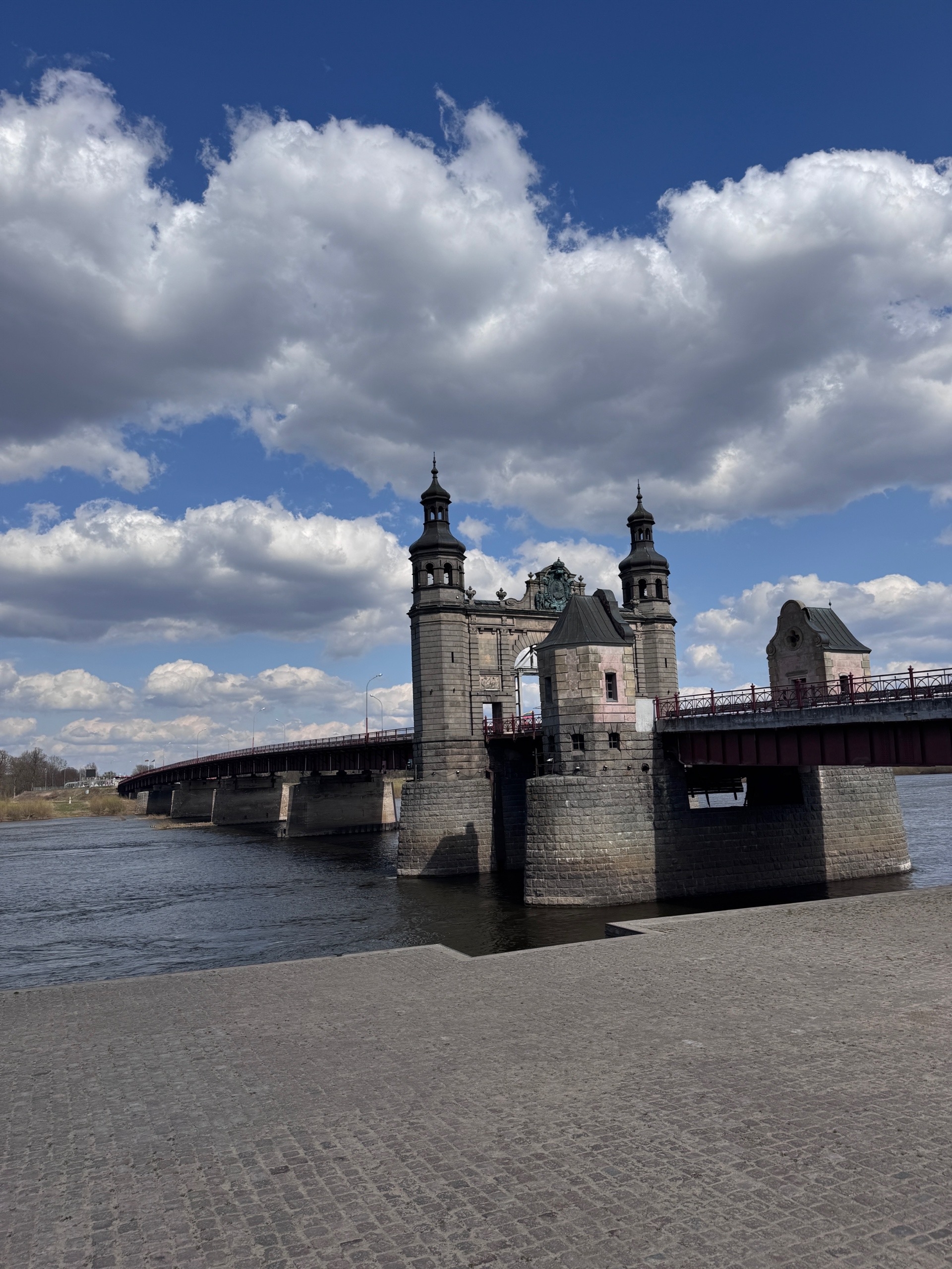 Главная точка — мост королевы Луизы — он же пешая граница с Литвой. Площадь оформлена красиво, на ней стоит памятник трамваю, лось Густав и несколько монолитных советских зданий.