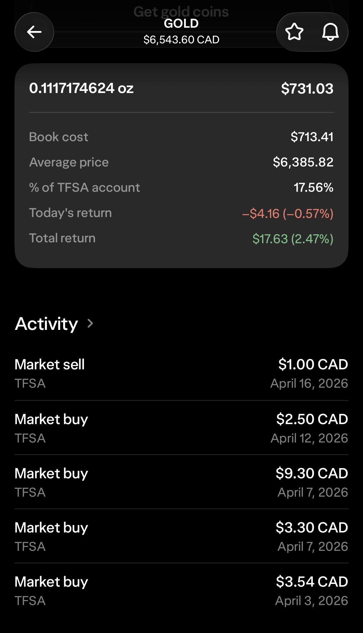 Меня вдохновил ее поступок. Раньше я никогда не сдавал тару в супермаркет, а выкидывал в бак для вторсырья. Теперь же решил изменить привычки, а собранные деньги — инвестировать в золото. На сейчас я собрал 7 134 банки, купил на это 0,1 унции золота и получил +2,5% — итого на моем счету 731 CAD или 40 130 рублей.