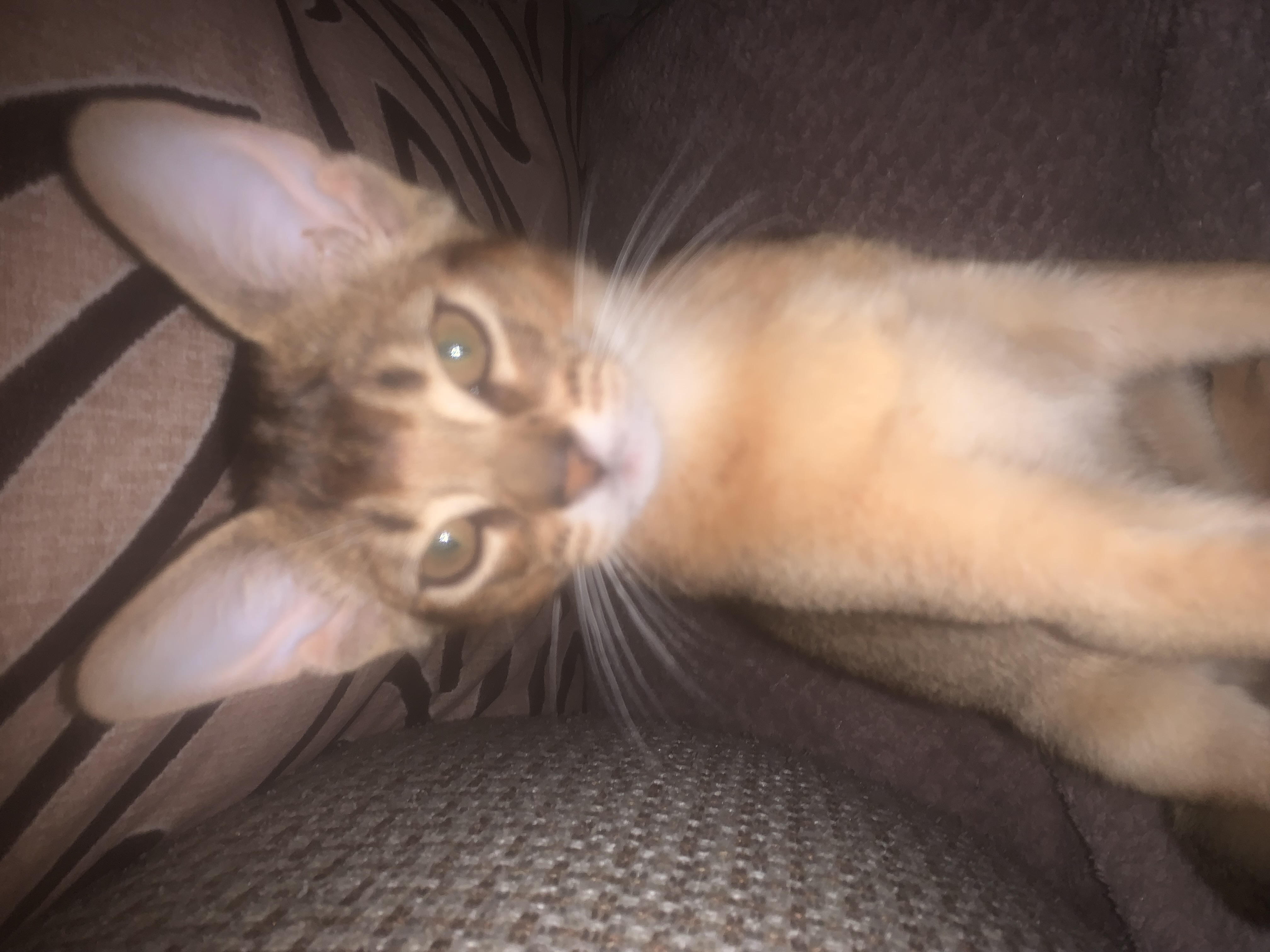 Она появилась год назад мы её любим и заботимся. Порода у нее абисинская это такая порода которая может напоминать дикую кошку не только окрасом, но и её поведением.