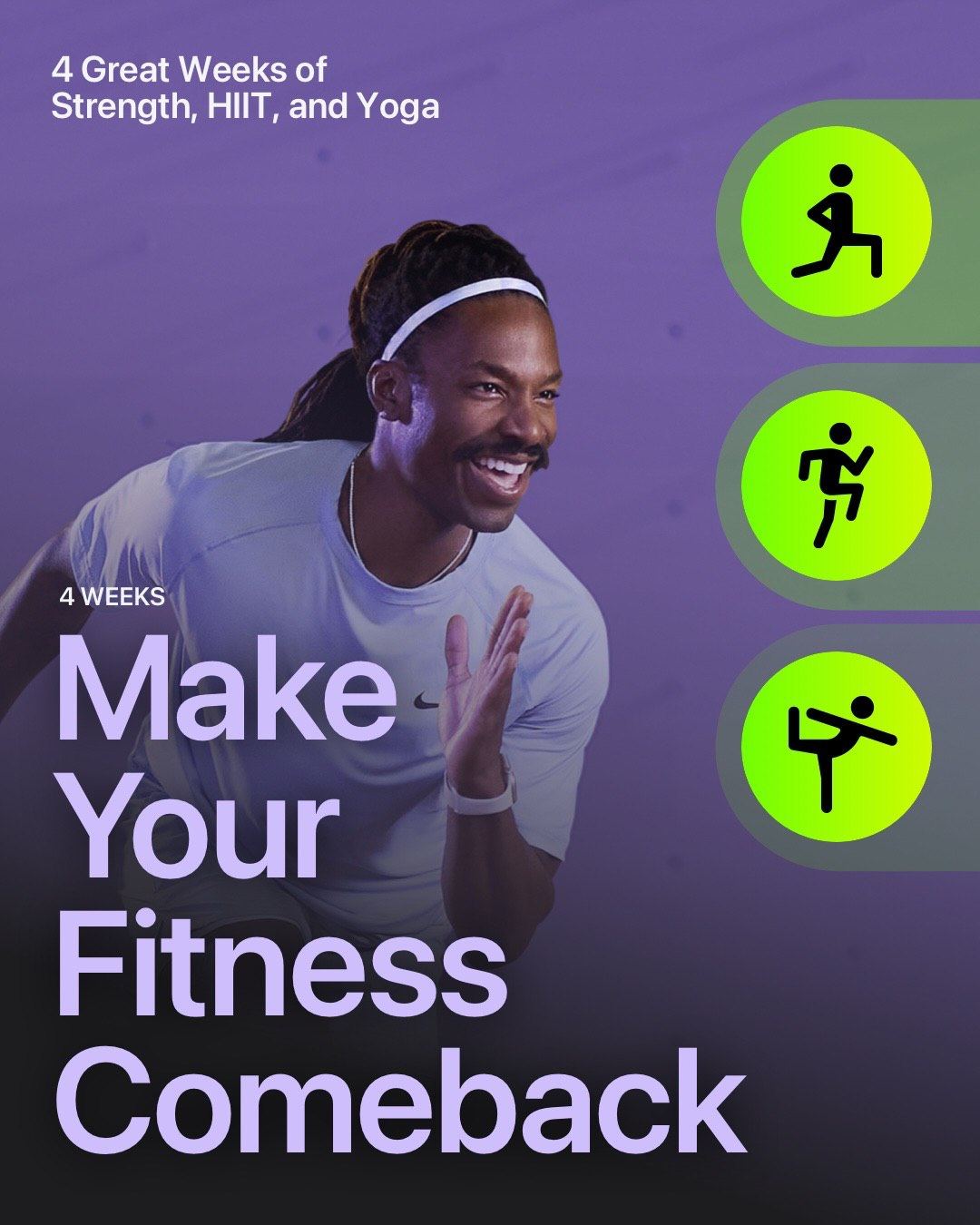 Я пользуюсь айфоном и эплвоч, поэтому я начал делать тренировки из платной подписки «Фитнес+» от Эпл. На выбор есть разные тренировки: кикбоксинг, силовые, пилатес, йога, ВИИТ (высокоинтенсивные интервальные тренировки), велотренажер и другие. В начале каждой идет небольшая разминка. Можно выбрать интервал, обычно это 10, 20 или 30 минут.