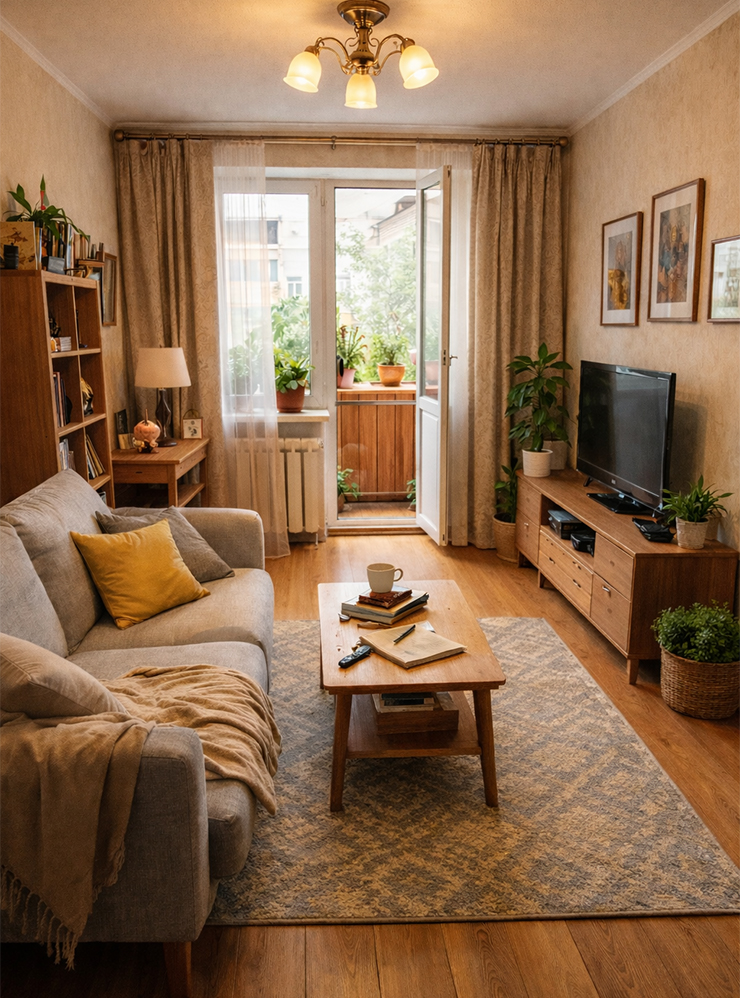 Посмотрим, как это работает, на примере квартиры в хрущевке, которую мы изменим с помощью модели Nano Banana Pro (сайт недоступен из РФ). Эта модель — часть экосистемы Google, и там есть бесплатные кредиты для тестирования.