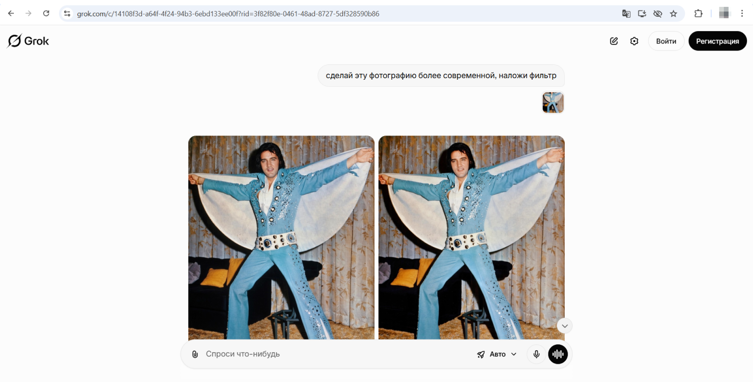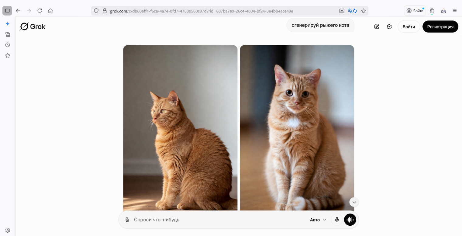 Grok без регистрации предоставляет широкие возможности. Можно общаться с чат-ботом, генерировать и редактировать картинки, прикреплять и анализировать файлы. Доступен голосовой ввод, есть возможность настроить интерфейс — поменять тему с темной на светлую. Без регистрации нельзя только создавать проекты и подключать сервисы Google и Microsoft.