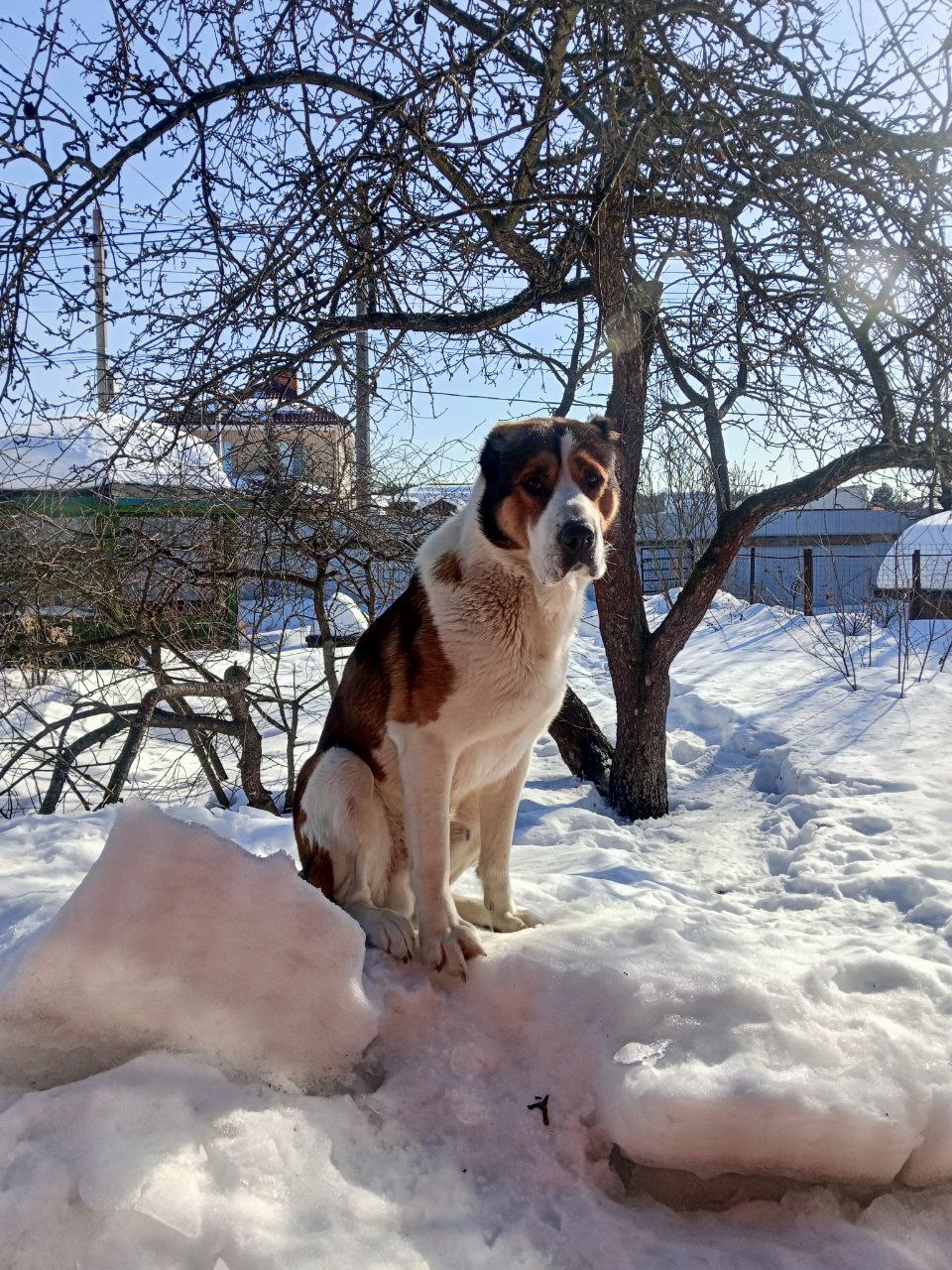 Фото питомцев: алабай Забар ждет, когда выйдут курильские бобтейлы Барон и Батон