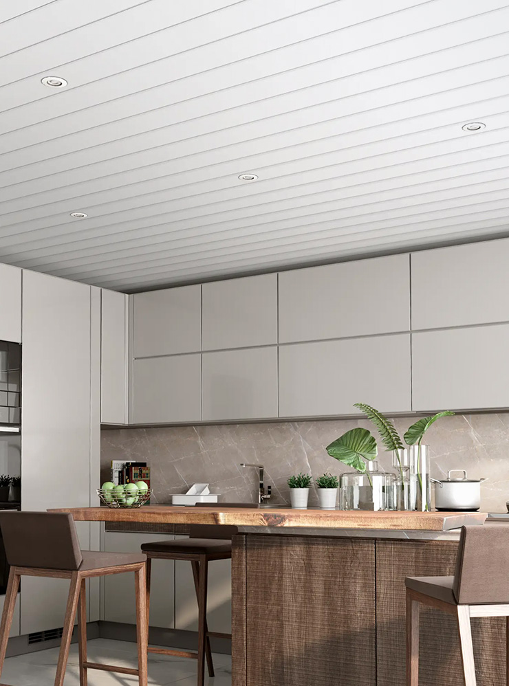 - реечный потолок — подвесная конструкция из наборных элементов;