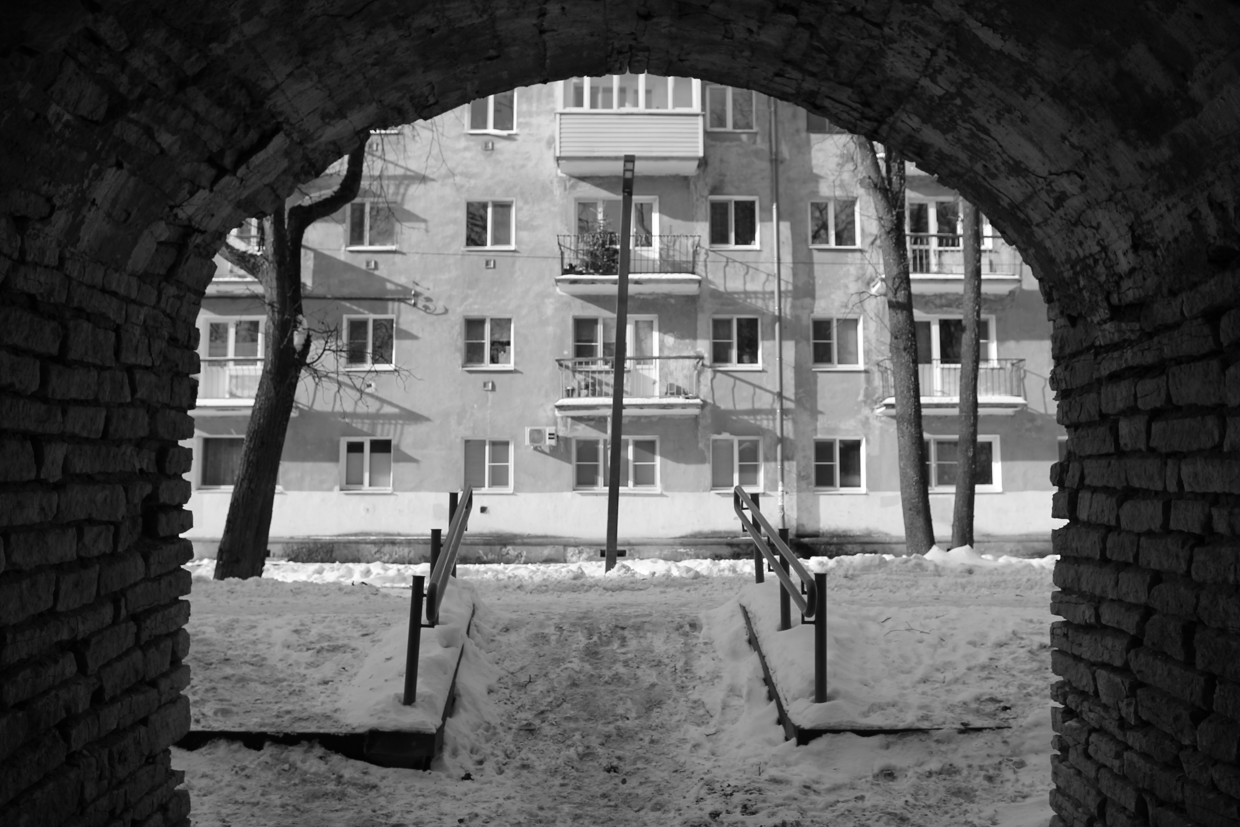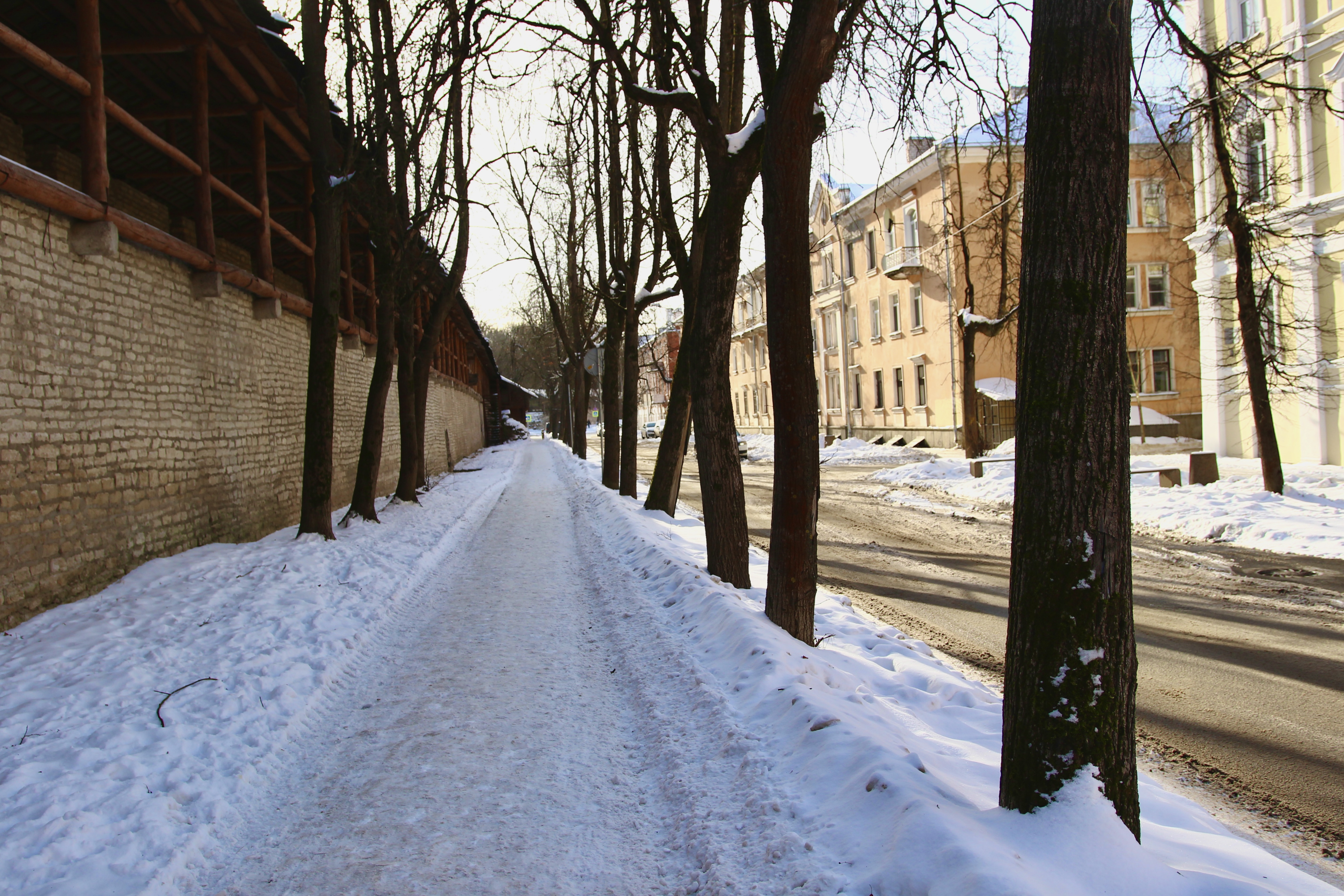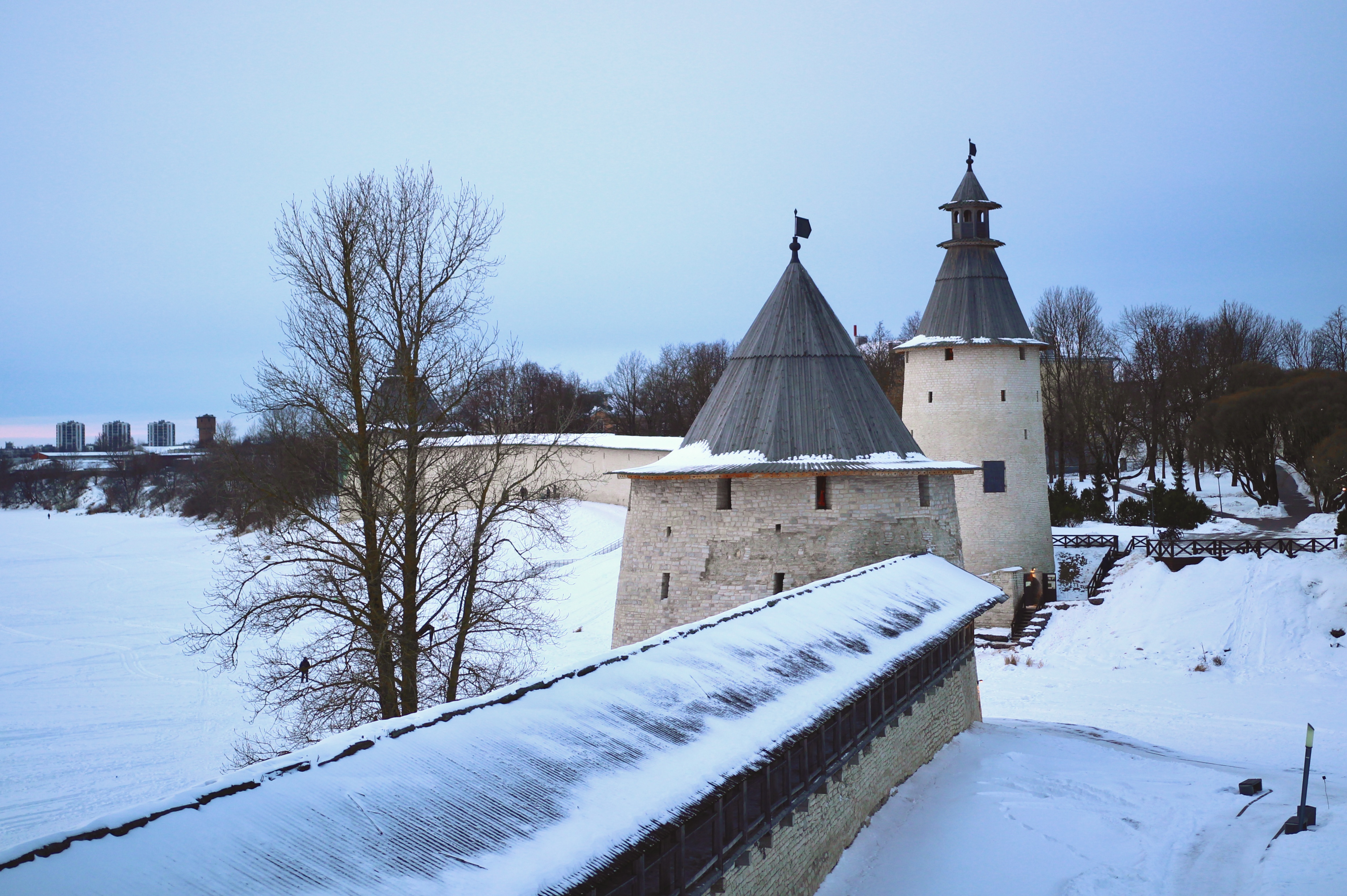 Что меня впечатлило больше всего — так это то, как гармонично средневековые памятники живут на улицах города. Крепостные стены проходят между изящными постройками 30-40-х годов, футуристичными экспериментами советских архитекторов, панельками и хрущевками, виляют по паркам и упираются в оживленные трассы. Прошлое в Пскове ненавязчиво, но оно всегда смотрит на тебя. Мне особенно понравилось, как местные дети катались на ватрушках с бастиона около Покровской башни, совсем не обращая внимания на эту величественную декорацию.