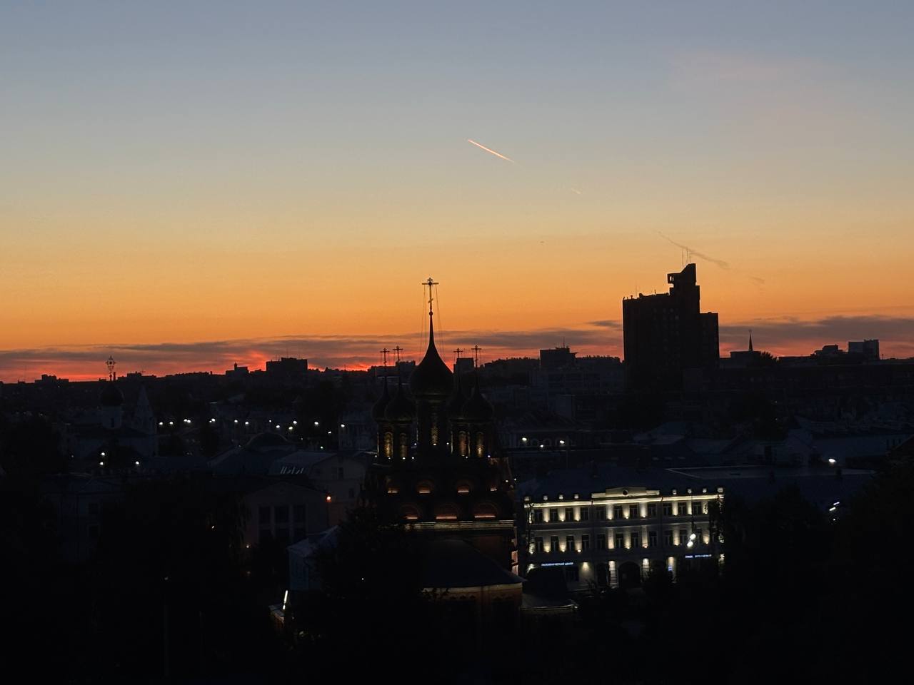 На следующий день прошлись уже по Нижневолжской набережной, когда спустились по Чкаловской лестнице, посмотрели Волжское пароходство, Рождественскую улицу с великолепной церковью Рождества Богородицы (и великолепной дыркой, ведущей в тайный подземный ход), оттуда увидели Федоровскую набережную — парящий парк 800-летия, и поднялись туда окольными путями через палаты Петра I и Афанасия Олисова — образцы зодчества XVII века. Закат мы дождались, но по моему мнению, бывают закаты намного лучше — я ценю розово-фиолетовые, а этот был красно-оранжевым. Потом прошлись по вечерней Покровской, были впечатлены зданием Государственного банка. А еще в этот день было лунное затмение, мы и поймали его на Покровской. Опять прошлись тайными путями домой.