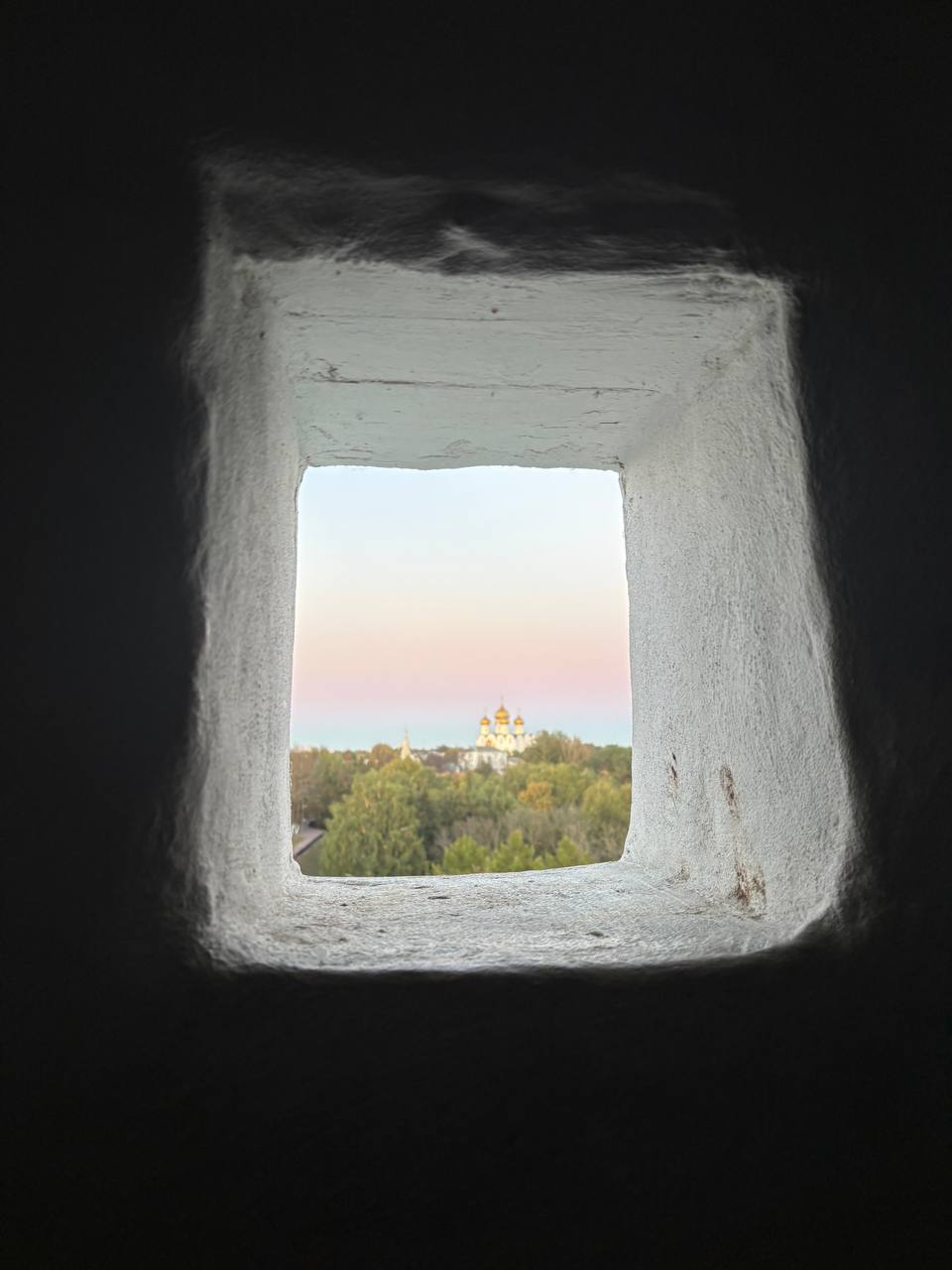 А в один момент ушли в более новую советскую часть города, и чуть было не опоздали на закат с колокольни. Вернулись домой по вечерней набережной — еще довольно полная луна отражалась в воде.