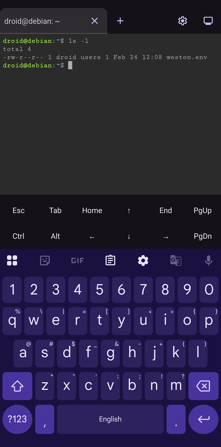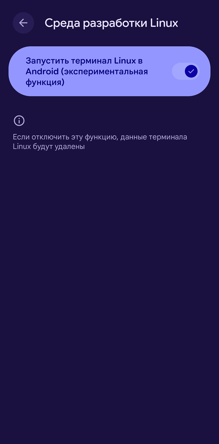 Чтобы воспользоваться эмулятором Linux, необходимо активировать режим разработчика и включить в нем функцию «Среда разработки Linux». После этого на смартфоне появится приложение «Терминал». Для перехода из него в графический режим достаточно нажать на иконку монитора в верхней панели.