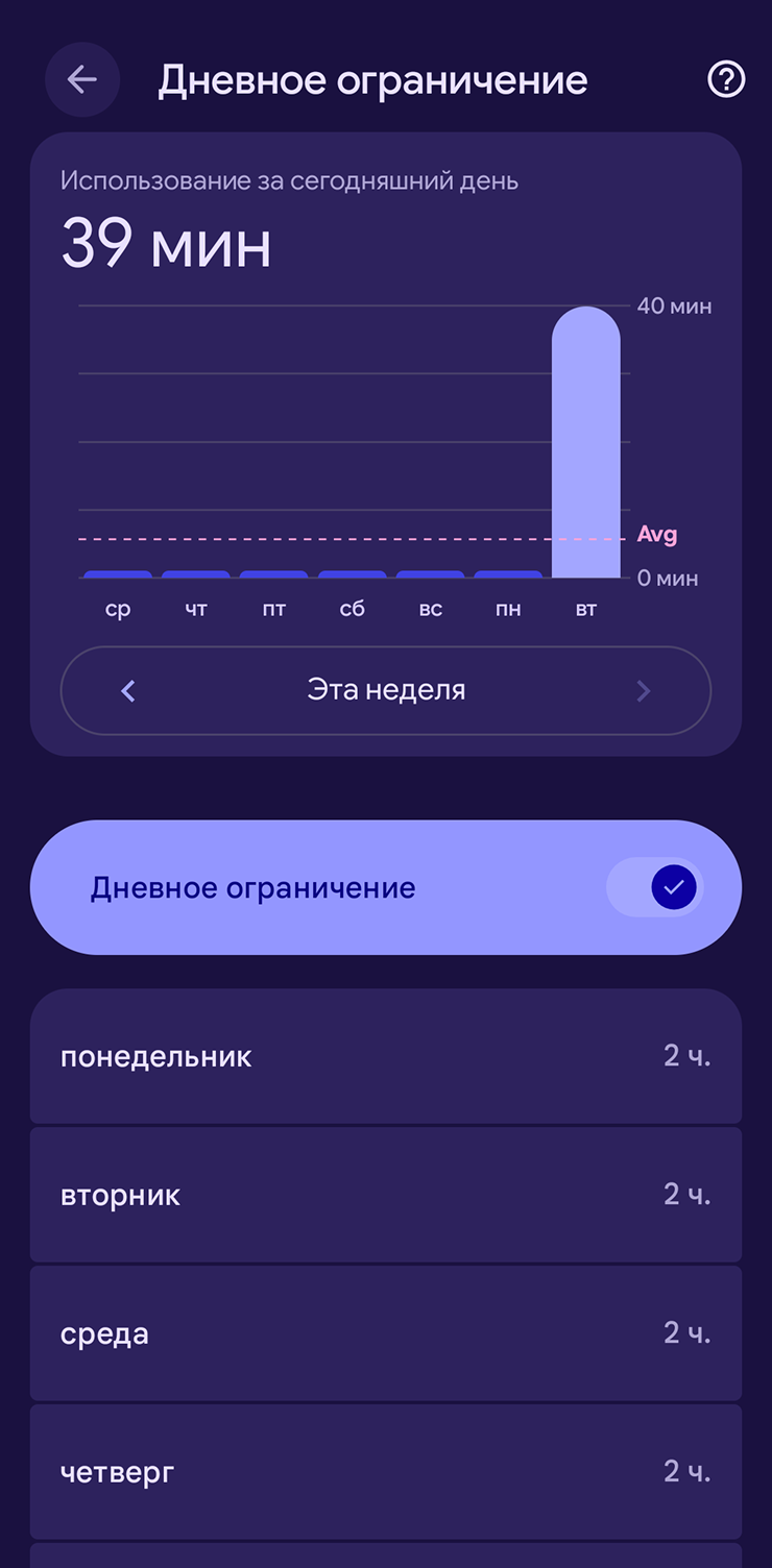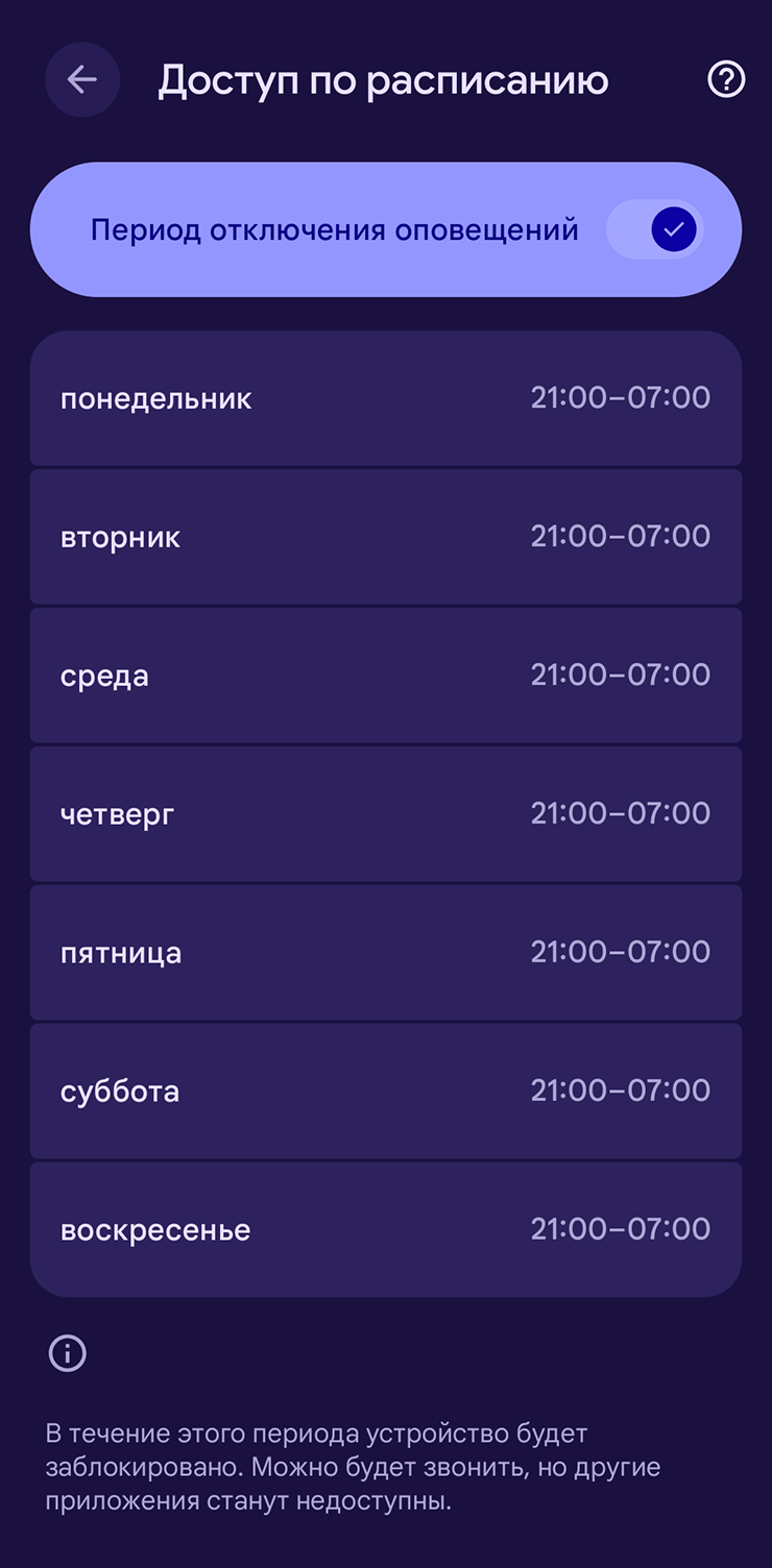 - Блокировка отдельных приложений или ограничение времени их использования.