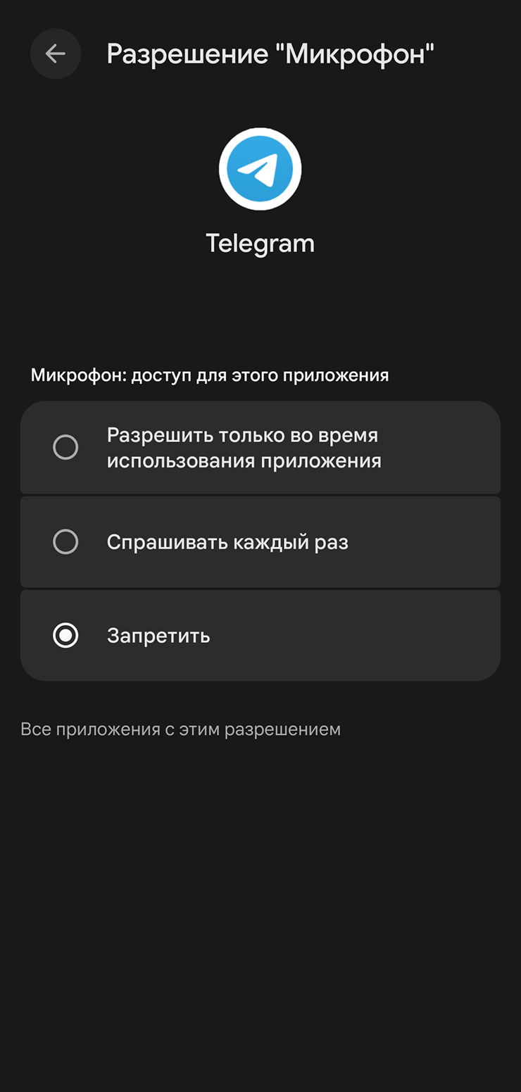- Разрешить только на этот раз — приложение получит доступ разово, позже может запросить его снова.