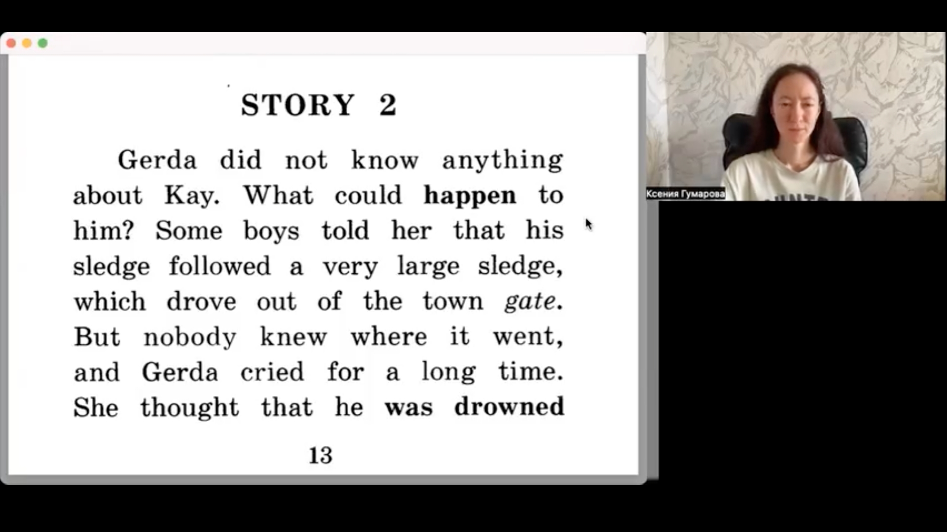 Так я продолжила проводить бесплатные встречи книжного клуба каждую неделю. Через несколько встреч желающих присоединиться к моим бесплатным встречам стало больше. Мы дочитали «Кота в сапогах» и взялись за «Снежную королеву» (The Snow Queen).