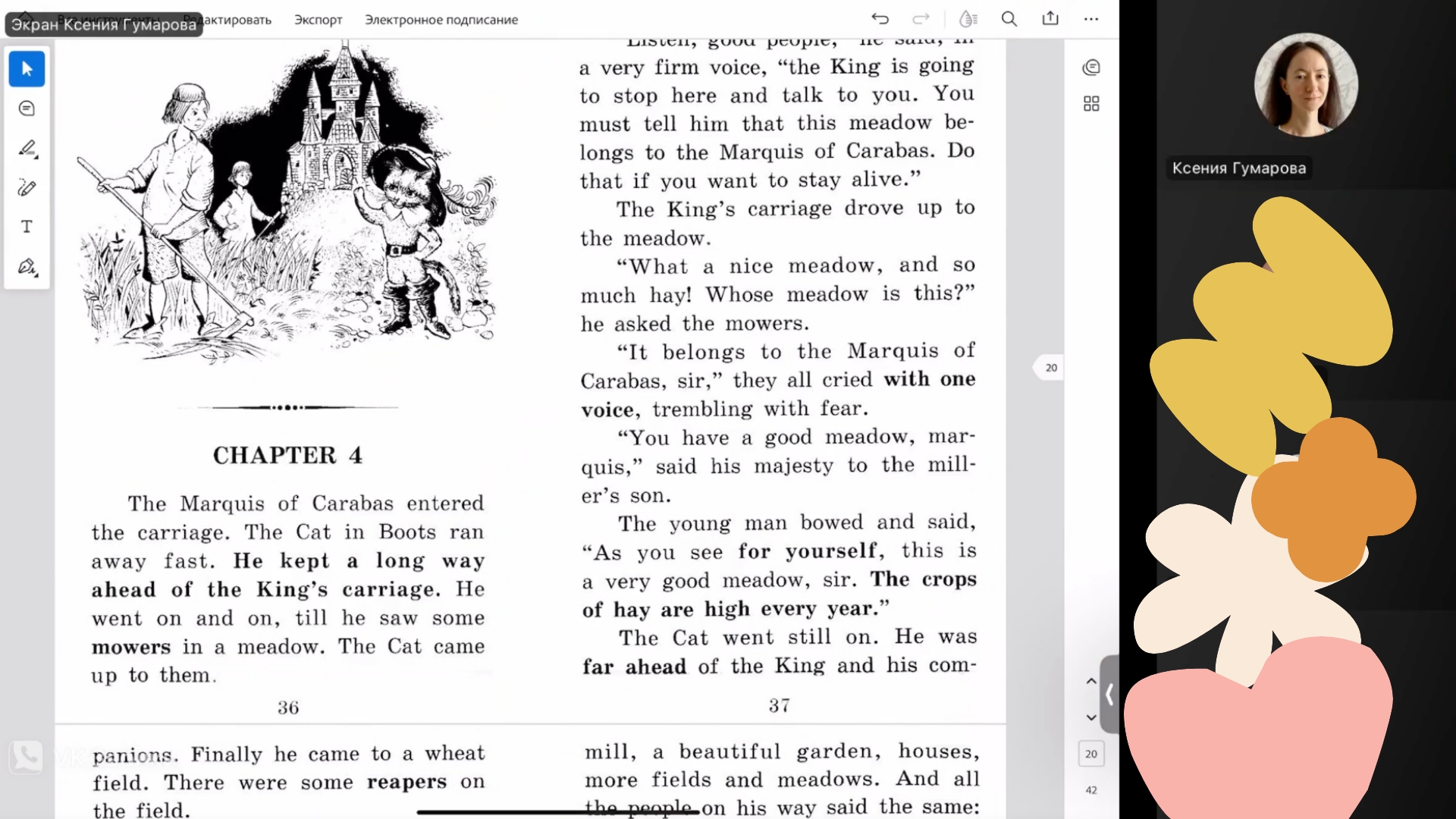 Пришли двое. Я и девушка, которая увидела моё приглашение на встречу. Мы открыли первую главу и начали читать и переводить по очереди. А потом обсуждали прочитанное на английском: «Почему кот вообще решил помогать мельнику?», «А если бы кот не умел говорить, что тогда?».