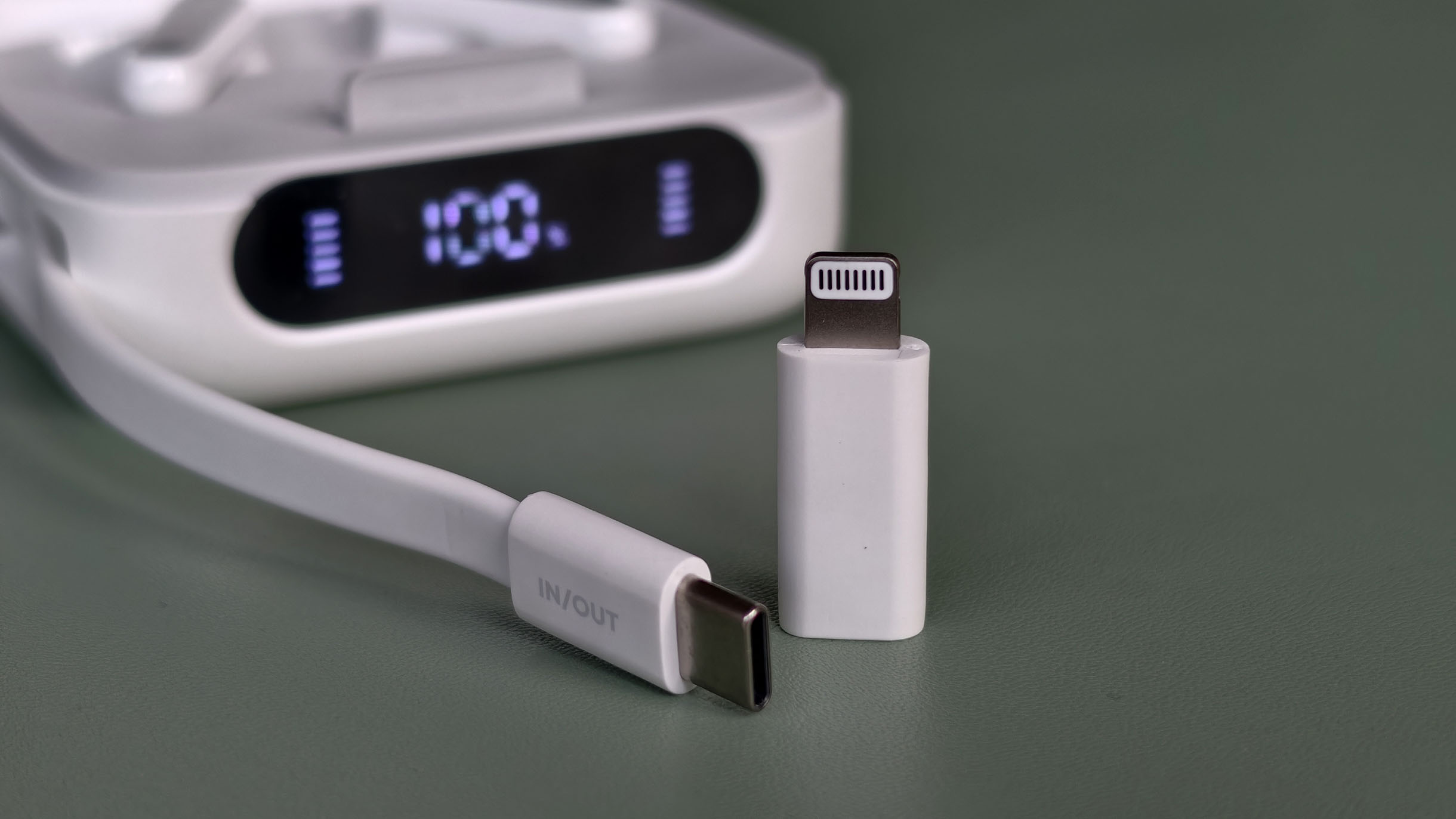 Тут даже есть встроенный кабель USB-C — он аккуратно закреплен на кейсе. Крепить наушники к поясу или рюкзаку за эту петлю лучше не стоит, но так он ни за что не цепляется. Под крышкой закреплен переходник на Lightning на случай, если у вас один из старых Айфонов.