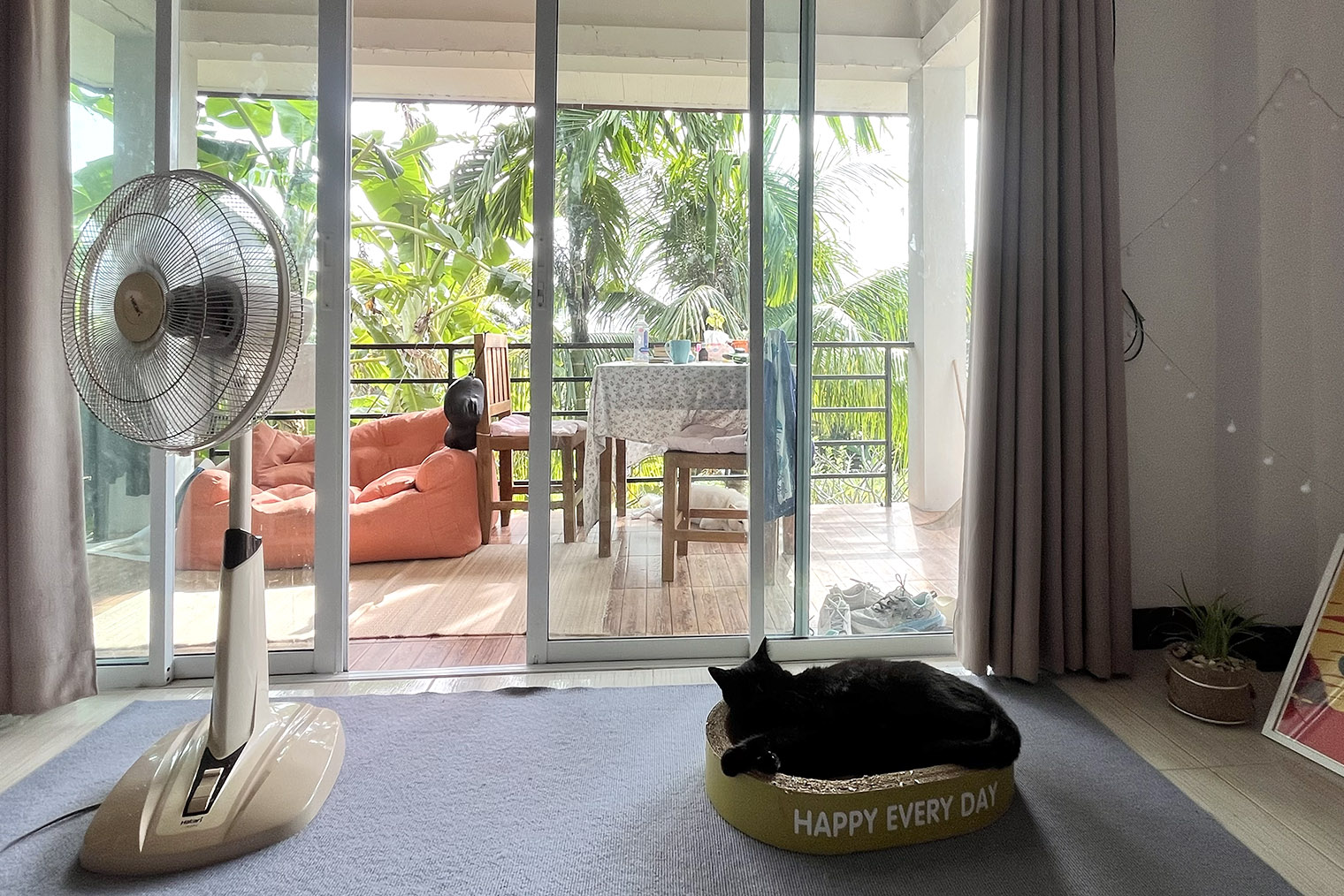 В комнате у меня всегда были задернуты блэкаут-шторы, которые жизненно необходимы в Таиланде: солнце настолько агрессивное, что без штор комната превращалась в печку.