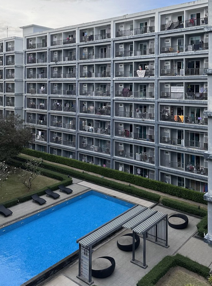 Кондо — это многоквартирные дома с концепцией «все под рукой». Там есть коворкинг-зоны, детские и спортивные площадки, автоматы с едой и напитками, консьерж-сервис, душ и туалеты, бассейн, сауна и спортивный зал. В более дорогих кондо предусмотрены теннисные корты.