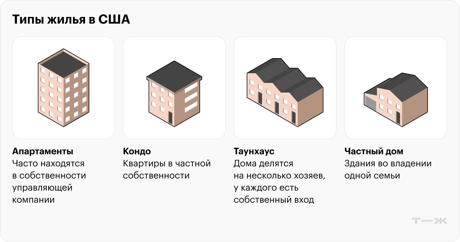 Основные типы арендуемого жилья в США:
