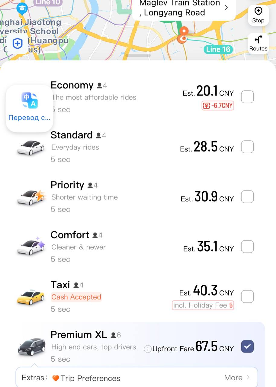 По тарифу «taxi» приезжают машины, которые разукрашены как такси. В них возможна оплата и наличными, и кошельком Alipay. Но у меня отрицательный опыт использования неважно заказываешь через didi или просто ловишь ̶ часто убитые и большая вероятность, что вас будут пытаться обмануть. В этом путешествии я один раз случайно заказала такую машину, и это был ровно 1 раз, когда с меня списали больше денег. Я торопилась и не сразу заметила.