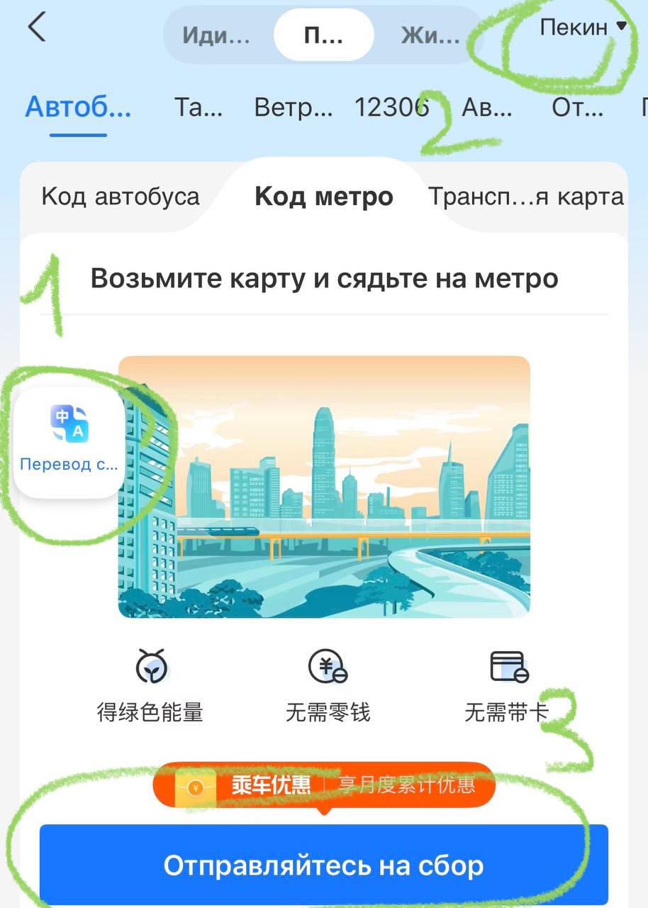 Заходим в транспорт, далее 1 — запускаем автоматический перевод, 2 — проверяем в верхнем правом углу, что город определился корректно и при необходимости меняем, 3 — нажимаем «отправляемся на сбор».