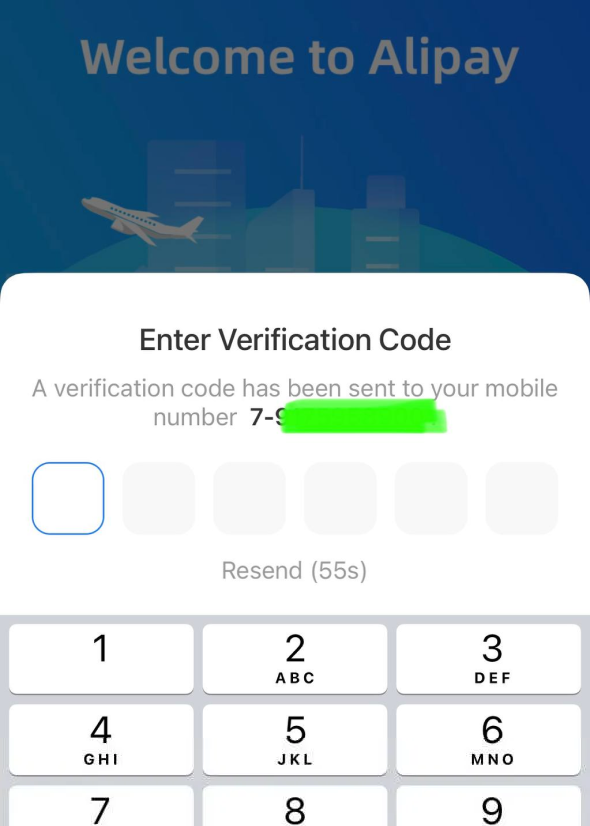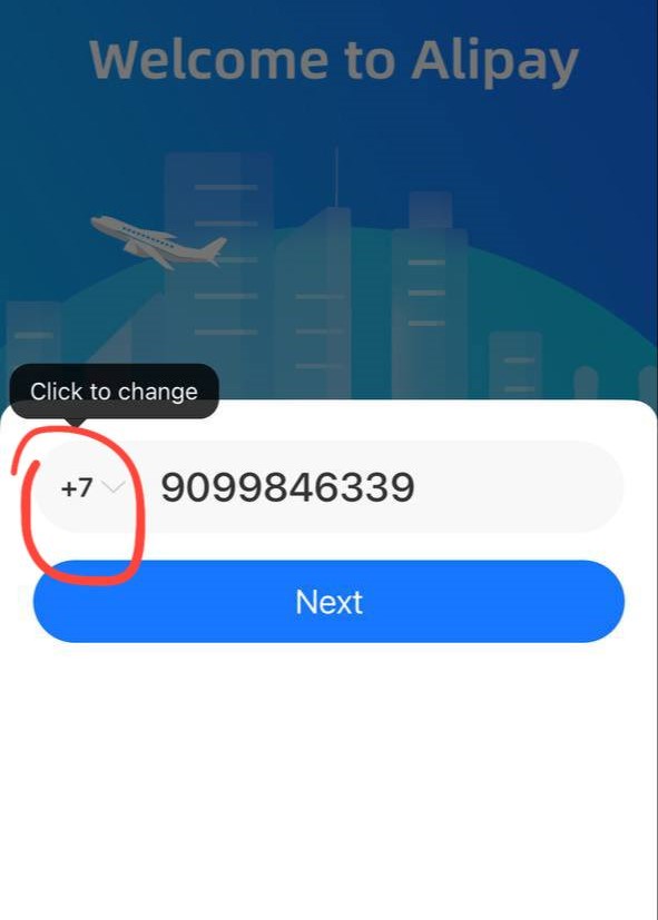 - после установки приложения создаем аккаунт по своему номеру телефона, русский номер подойдет. Важно! Для подтверждения входа приходит смс, так что устанавливать alipay нужно пока у вас есть возможность ее получить;