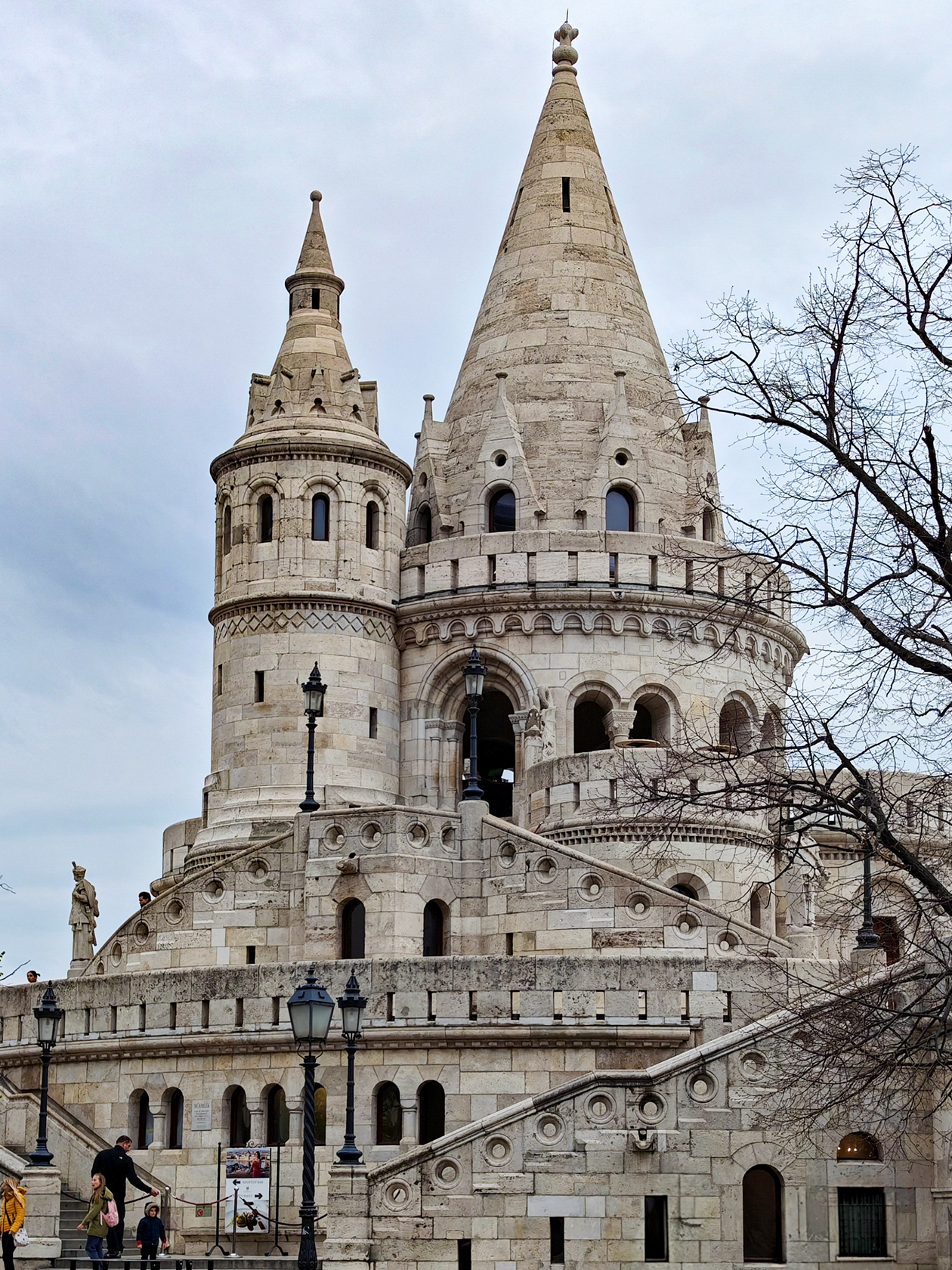 Рыбацкий бастион — площадь на Будайском холме, окруженная крытой галереей длиной около 140 метров с семью коническими башнями. Оттуда открывались потрясающие виды на Дунай и город. Билет стоил 4 € (374 ₽) с человека.