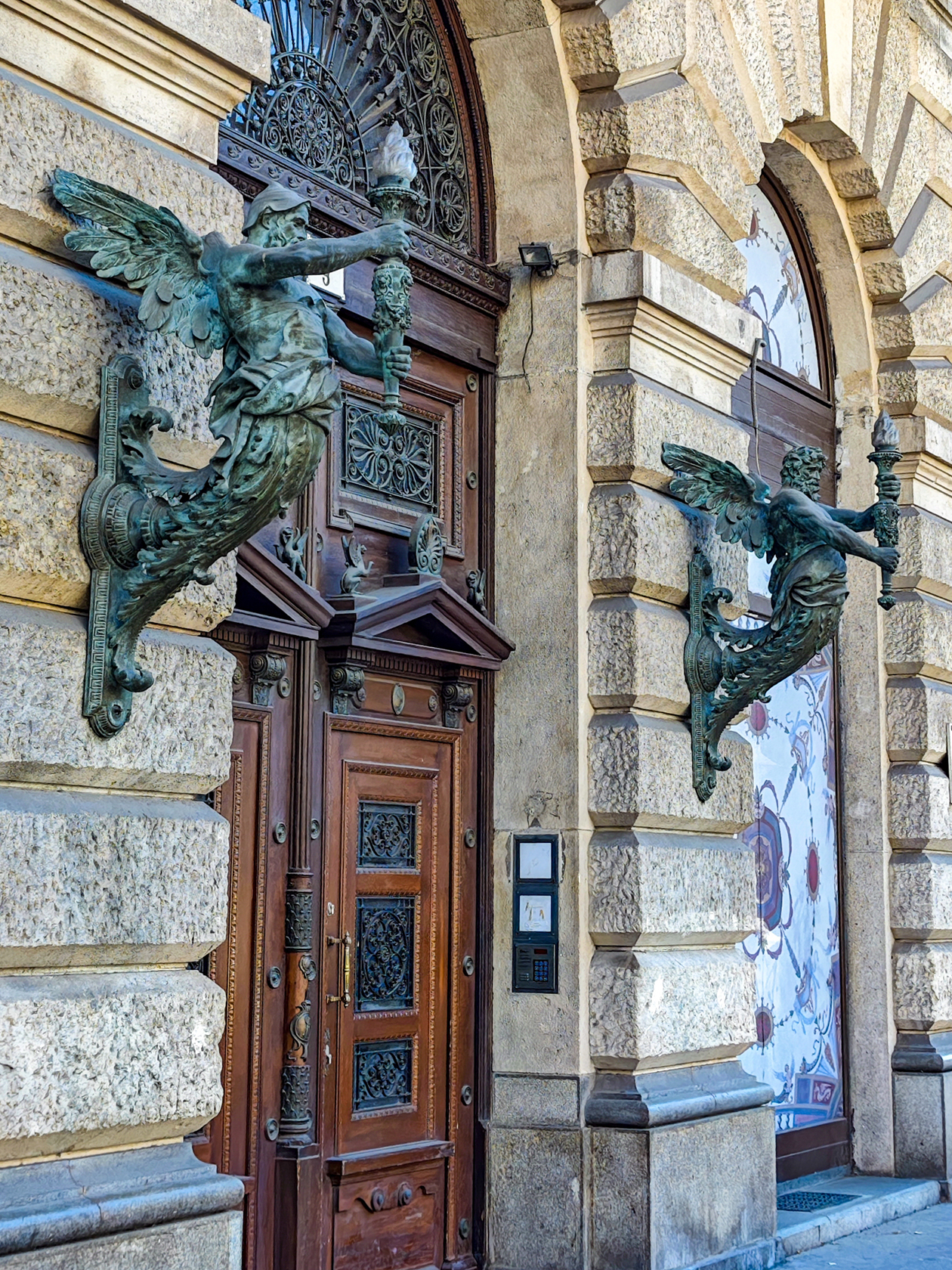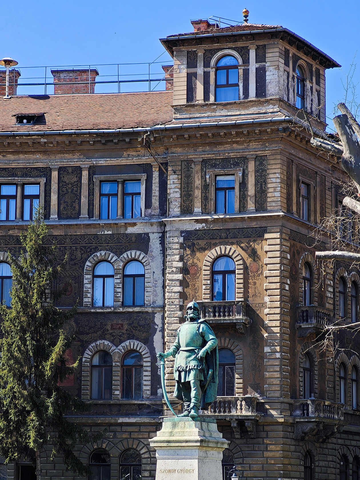 Дворец Шандора — официальная резиденция президента Венгрии. Ежедневно в 12:00 рядом с ним проходит смена почетного караула в сопровождении барабанов. Мы пришли туда около 15:00 и застали встречу посла Израиля. Были барабаны и трубы, но это не произвело на нас особого впечатления.