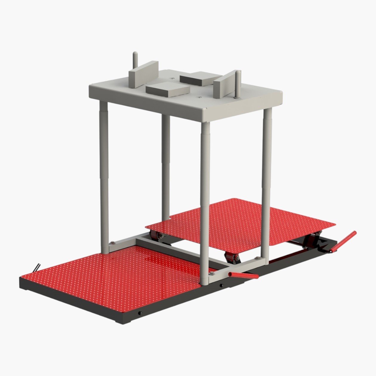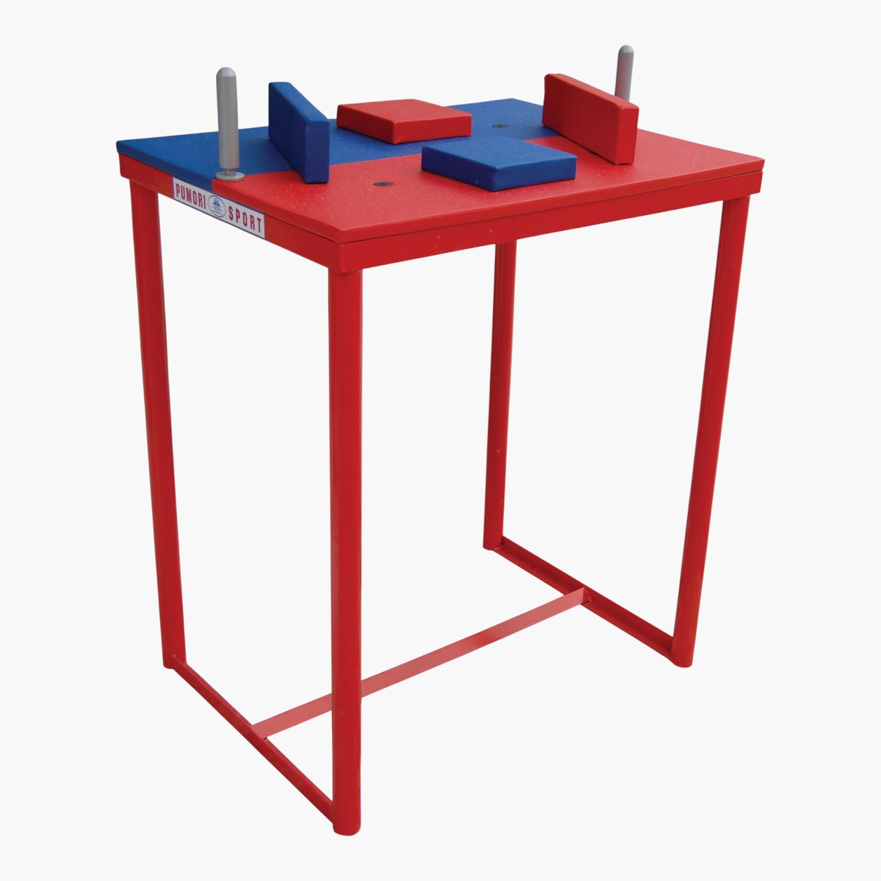 Основной инвентарь для армрестлинга — стол. На нем расположены штыри, подлокотники и опорные подушки. На профессиональном уровне также используют подставку для регулировки высоты, чтобы атлеты разного роста чувствовали себя комфортно за столом.