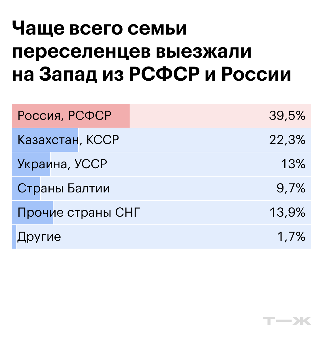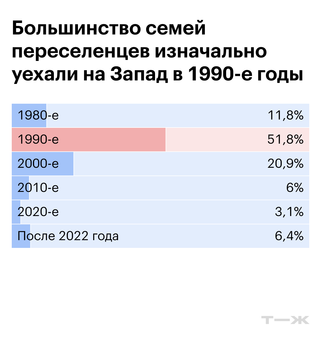 Граждане других стран в 2025 году составили только 8,1% переселенцев. Например, жители Германии — 3,9%, стран Балтии — 2,9%, Израиля — 0,3%.