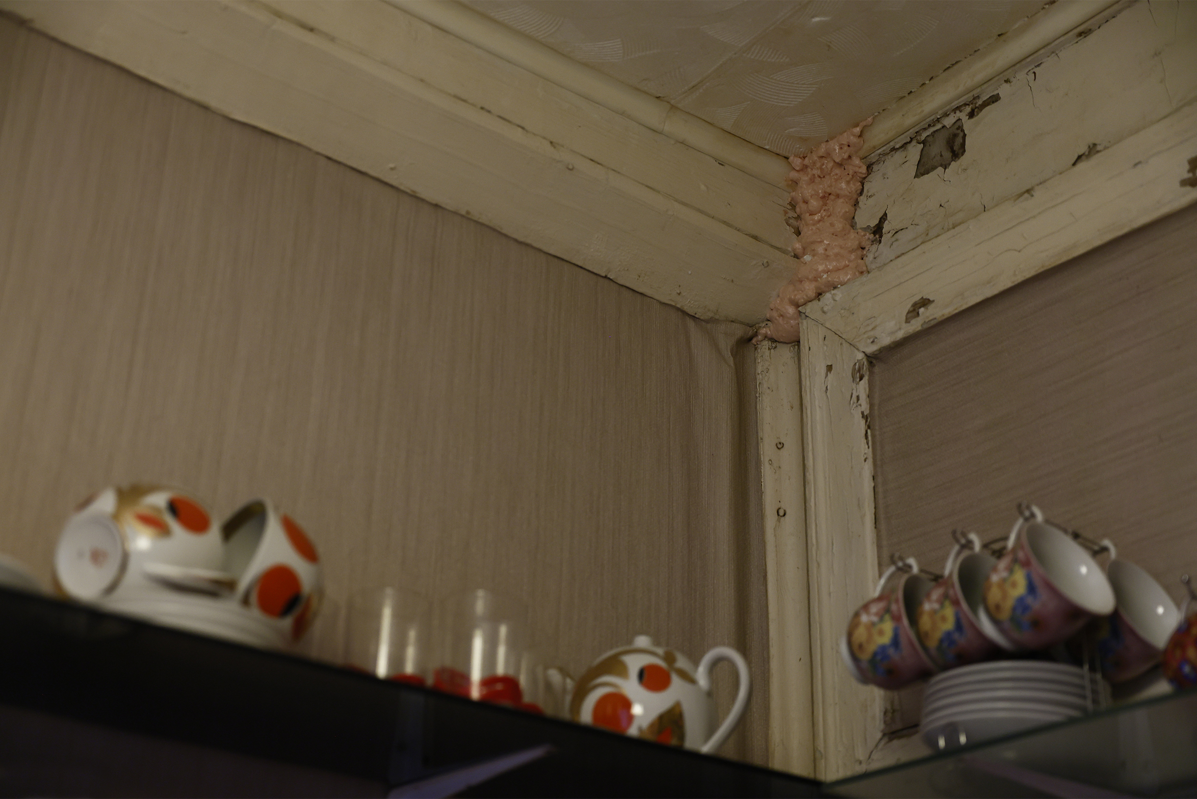 Из-за непреходящей влажности по вещам расползается грибок. Чтобы одежда не заплесневела, в жаркие летние дни ее вытаскивают на просушку. От кожаных вещей Любови пришлось избавиться — они покрылись белым налетом. Стены отсырели настолько, что в них плохо держатся саморезы — и женщина боится, что подвесной телевизор в ее комнате в любой момент упадет.