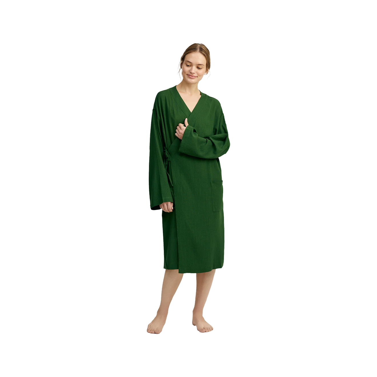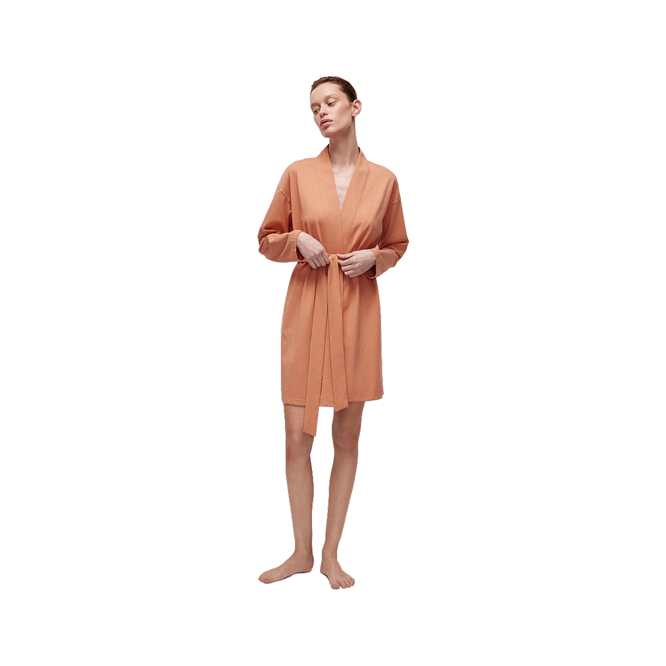 Мягкость, гипоаллергенность и высокая воздухопроводимость натурального хлопка делают его популярным материалом для домашнего халата. К тому же он прост в уходе — разрешена деликатная стирка при 30 °C. Но нужно учитывать, что материал сохнет чуть дольше, чем, например, лен или синтетика.