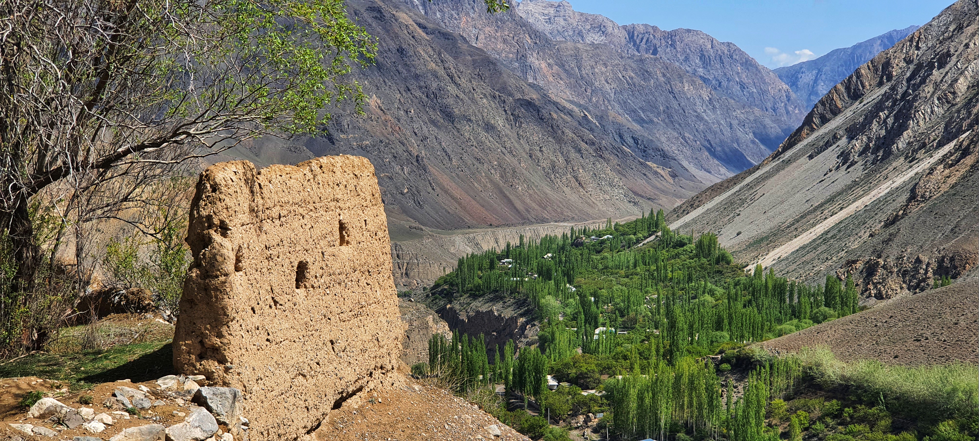 3. Кан: Цитадель, ставшая садом. Перед въездом в глубокое ущелье я остановился у крепости Кан (или Кудаяр-хана). Это бывший форпост Кокандского ханства, который веками контролировал вход в долину. Место поражает своим контрастом: