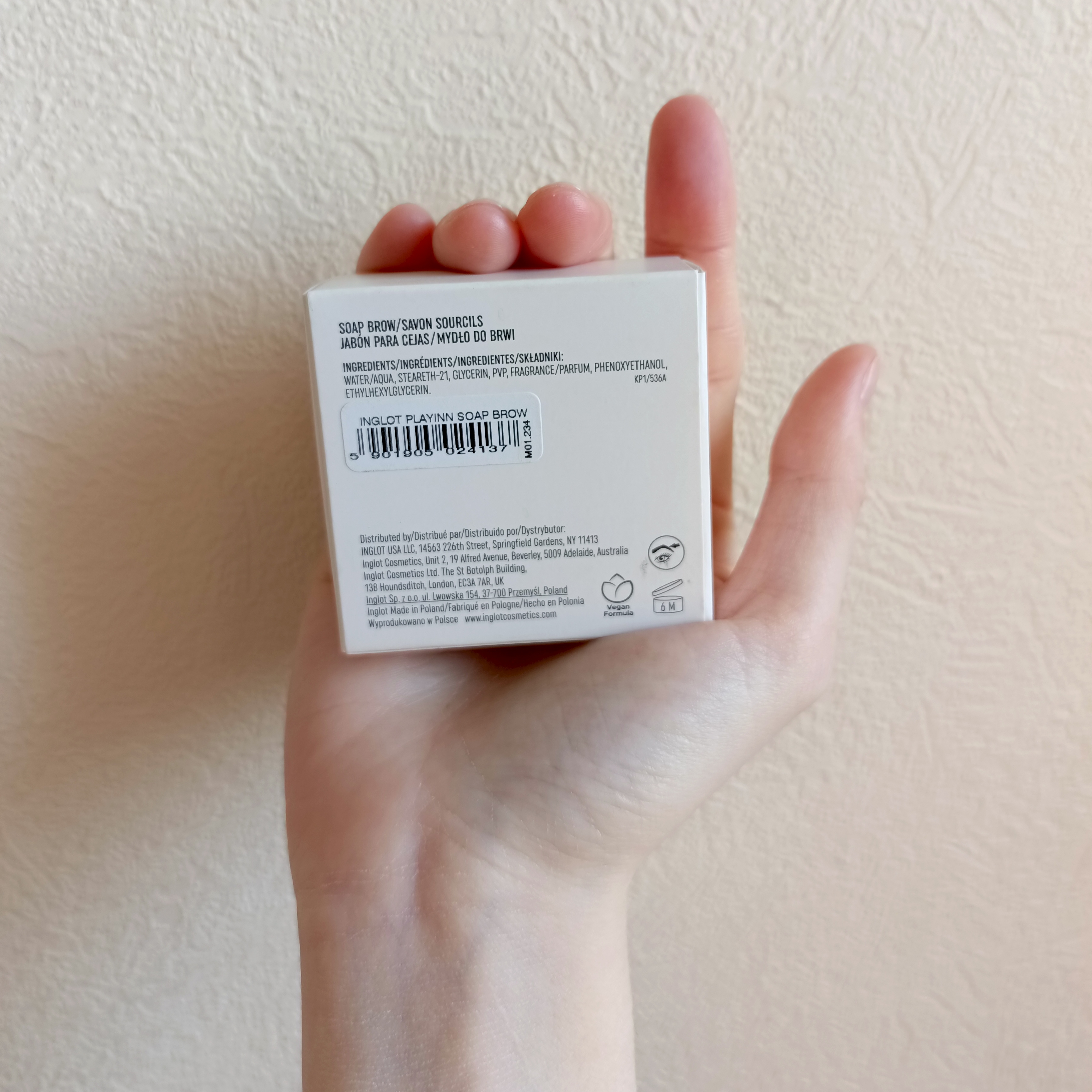 У меня густые брови с жесткими непослушными волосками — под силу не всякому гелю, мылу, воску. Не хвалюсь и не жалуюсь, просто констатирую факт. После трех неудачных покупок я задалась целью найти средство, идеальное по всем параметрам. Мои требования: цена от одной до двух тысяч рублей, отсутствие цвета, сверхсильная фиксация, продолжительная стойкость, экологичный и безопасный состав (по возможности), перерабатываемая упаковка (по возможности). Листая каталог «Золотого яблока», я наткнулась на мыло-фиксатор Inglot Playinn. Удивлена, что о нем до сих пор не кричат на каждом углу.