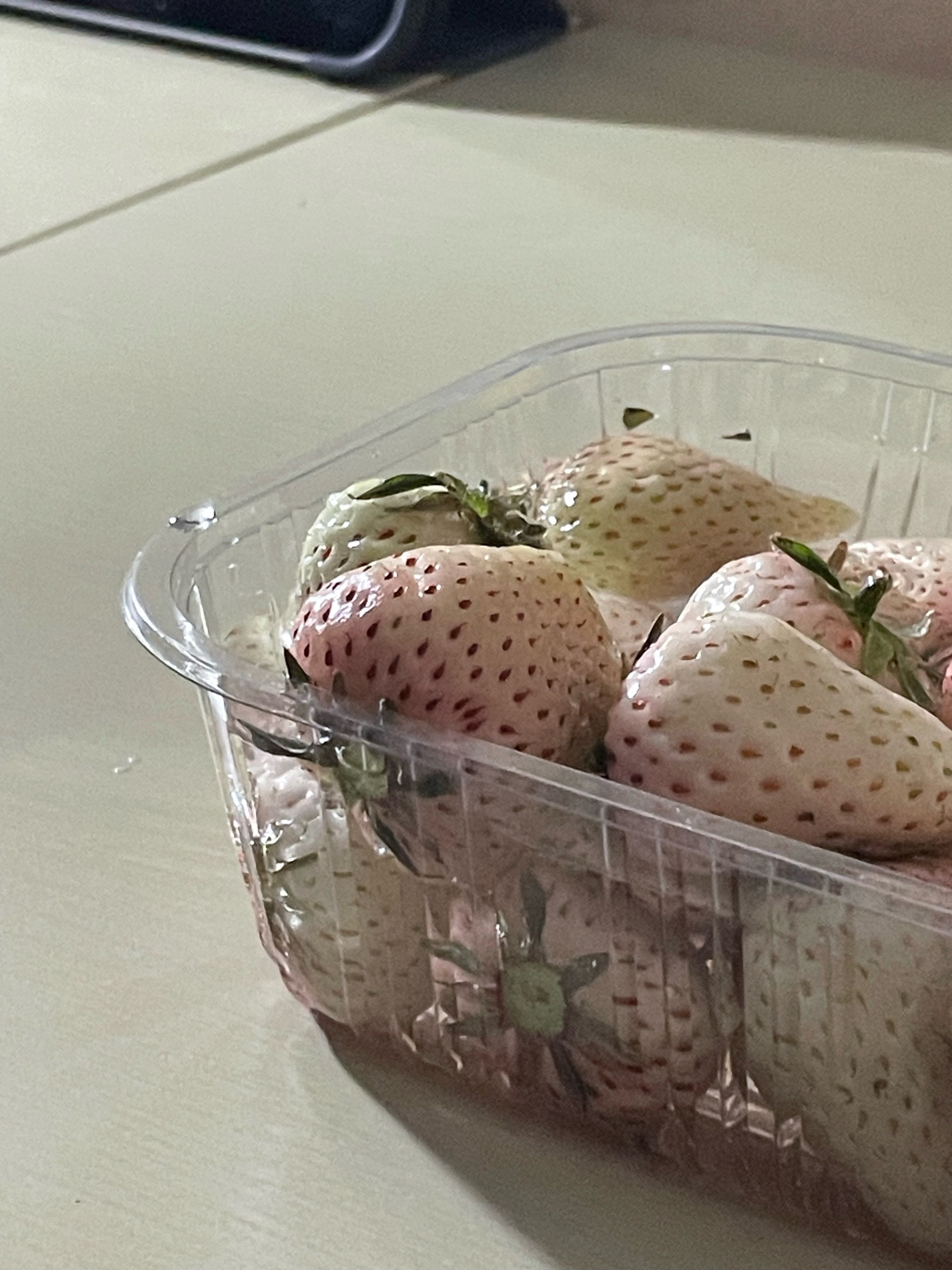 Попробовали белую клубнику. Она спелая, просто такой сорт. Очень понравилось. Жду сезон манго!
