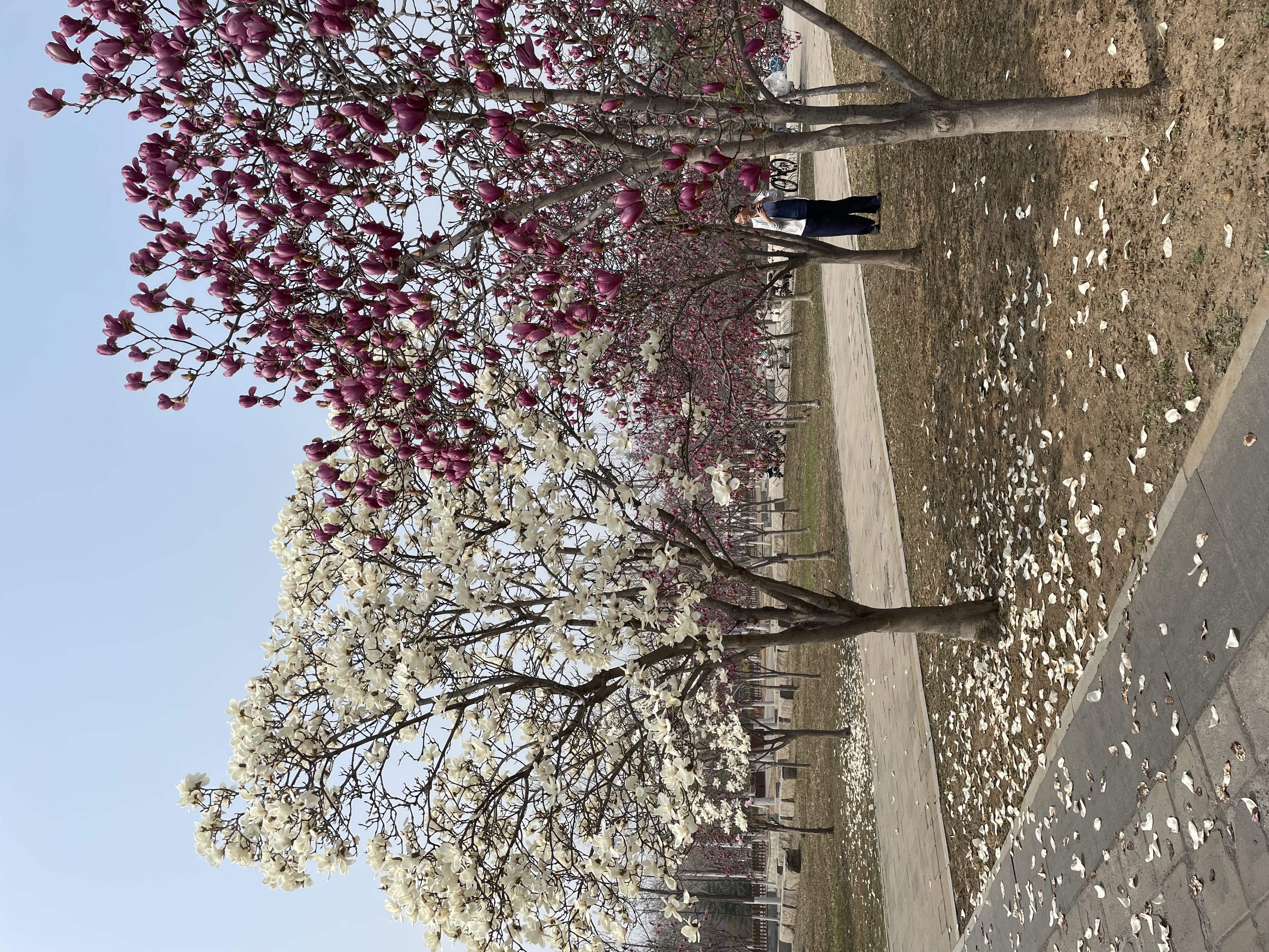 Сейчас идеальная весенняя погода, не холодно, как было, и не жарко, как будет. На территории кампуса всё цветёт.