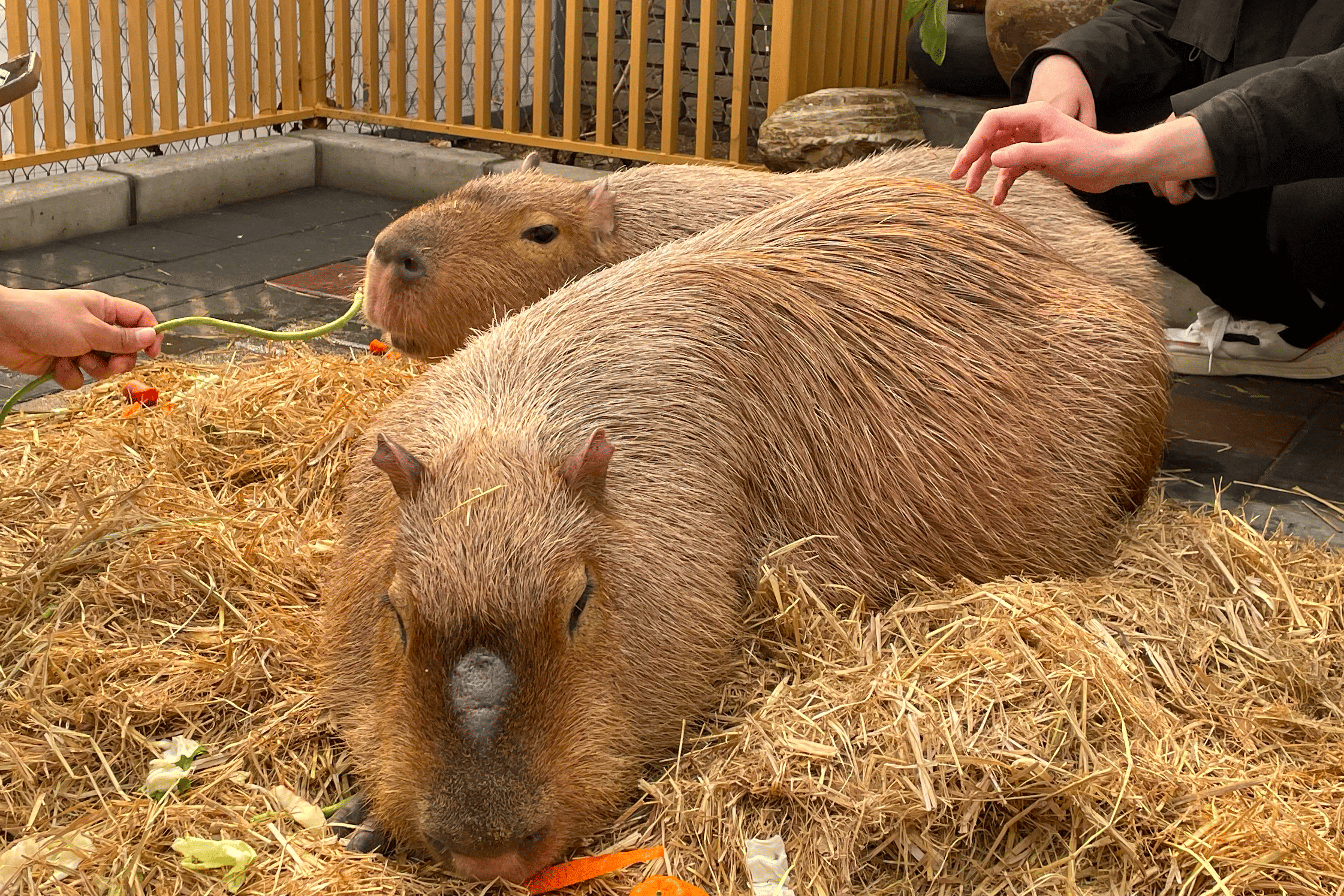 На выходных поехали в Beijing Wildlife Park. Вход — 90 ¥. Запомнились красные панды и капибары размером с пони. Парк похож на зоопарк, но есть аттракцион, из‑за которого мы назвали его «Сафари».