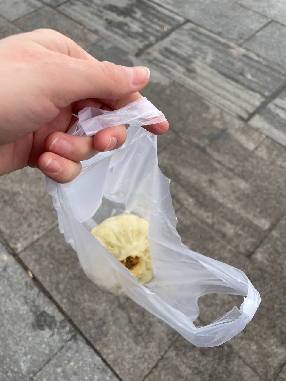 На завтрак баоцзы с говядиной за 4 ¥. Похоже на большой пельмень.