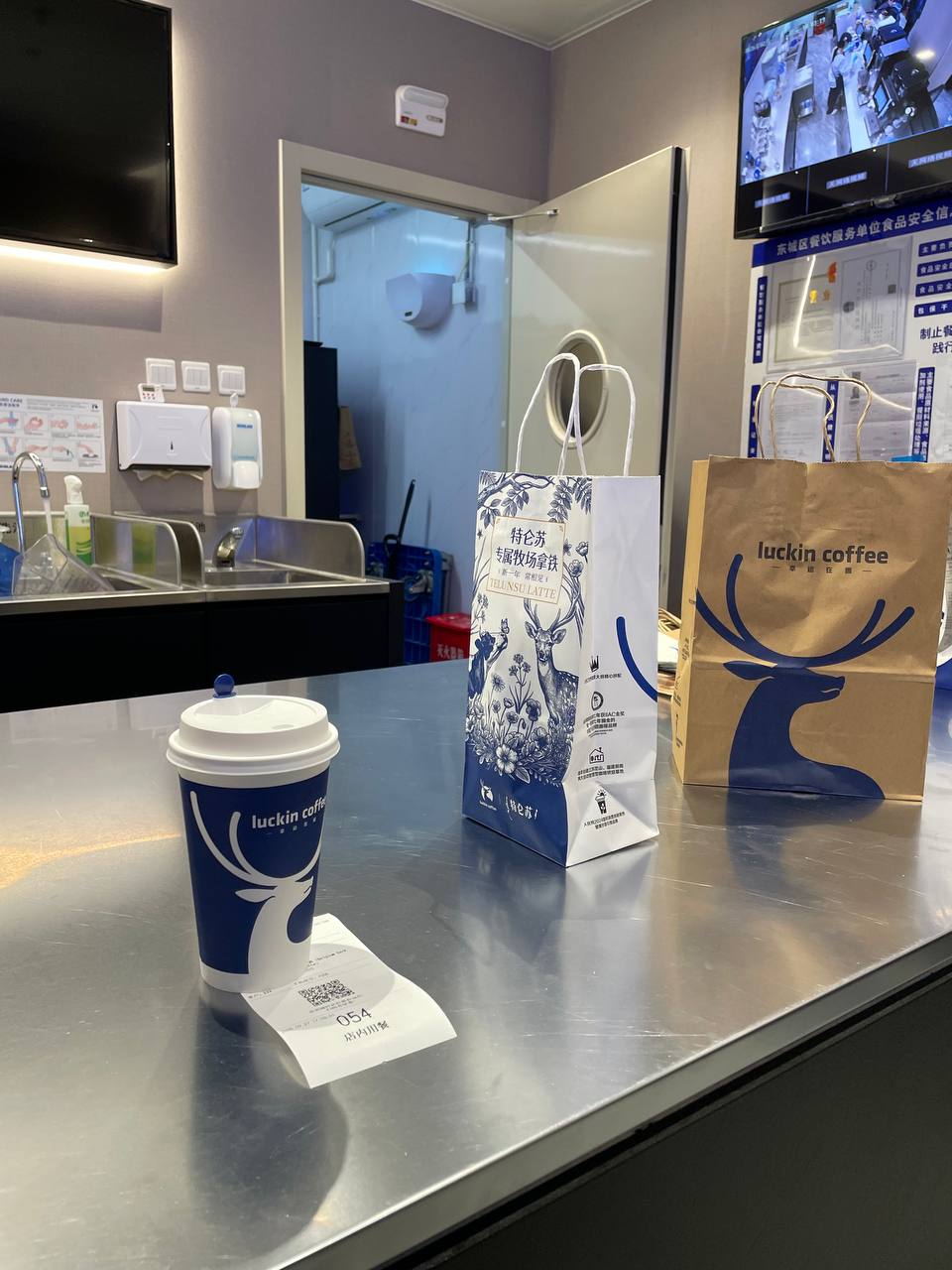 Попробовала кофе в Luckin. Дизайн кофейни напоминает «Дринкит», заказ создаётся без контакта с бариста, но ему всё равно можно задать вопросы.
