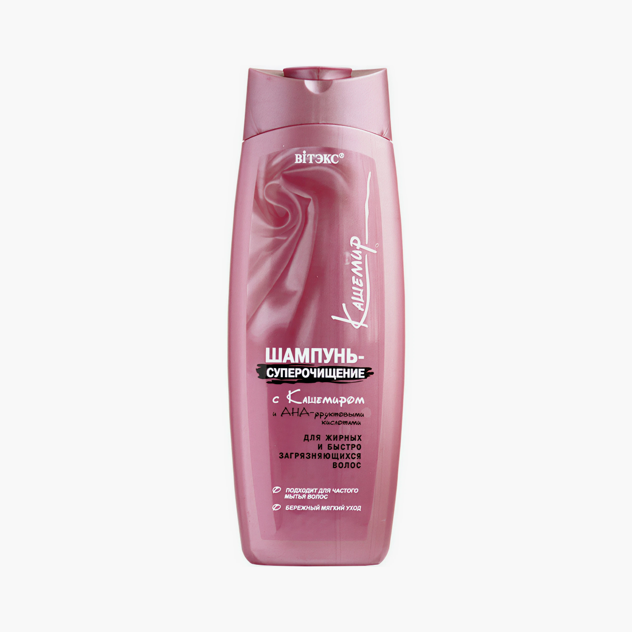 Альтернатива. «Витэкс кашемир» — шампунь белорусского бренда, который содержит жесткие и мягкие ПАВ, такие как лаурилглюкозид, поэтому хорошо промывает жирную кожу головы и волосы в прикорневой зоне, не пересушивая.