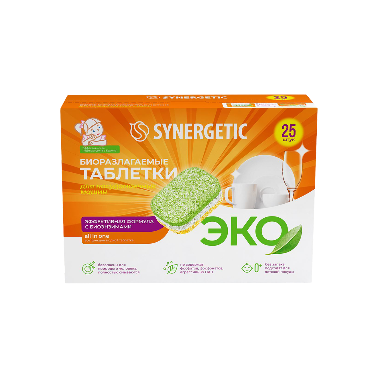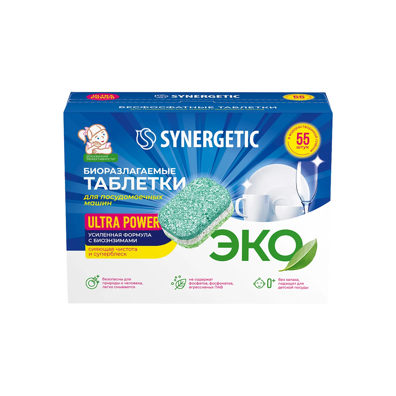 Производители таких средств делают ставку на биоразлагаемые компоненты и снижение воздействия на окружающую среду — по их заявлению. Обычно в составе нет фосфатов и агрессивных отбеливателей. По эффективности при сложных загрязнениях они могут уступать более «сильным» формулам, поэтому иногда требуют высокой температуры мойки или предварительного ополаскивания.