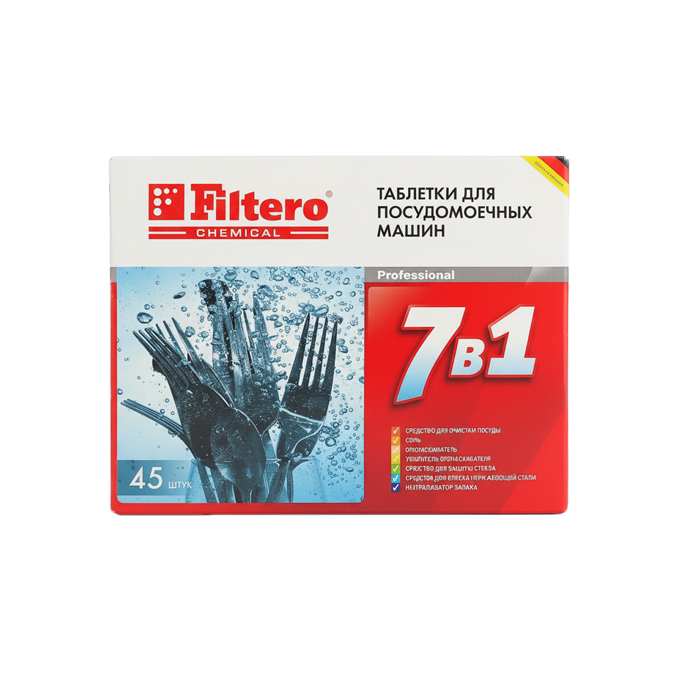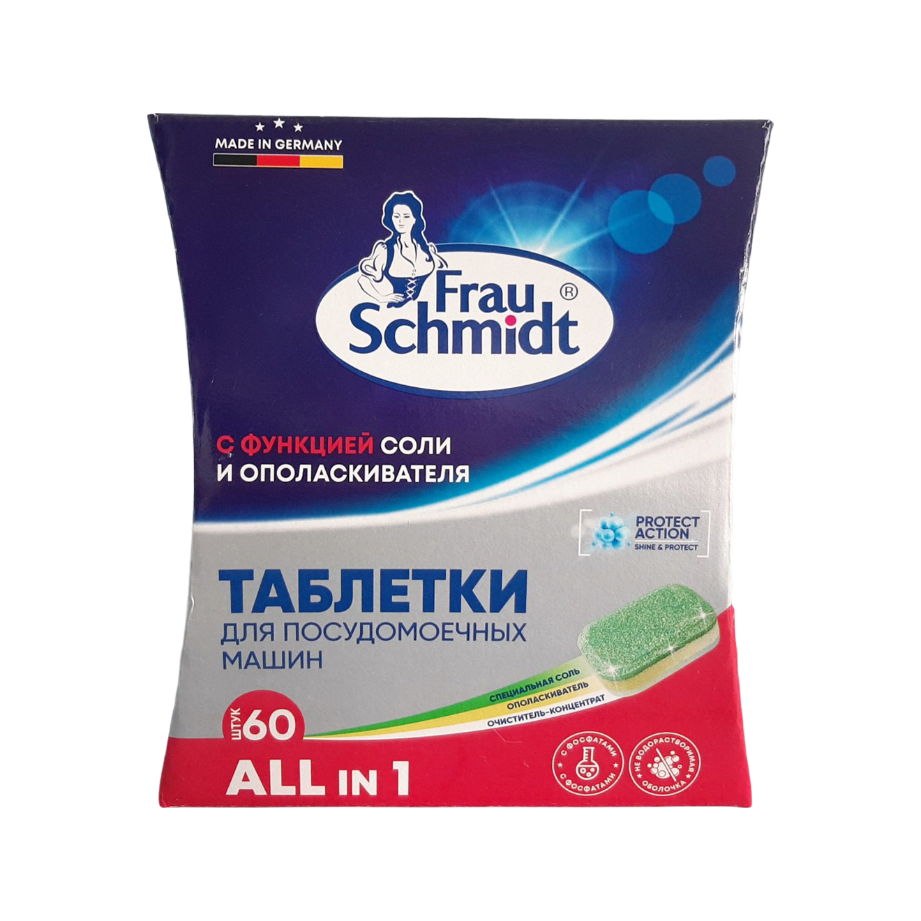 В состав таких таблеток входят компоненты для смягчения воды, например фосфаты. Они смягчают воду, снижают риск белых разводов на посуде и образования известкового налета внутри посудомойки. Но при высокой жесткости воды лучше дополнительно использовать соль — это защищает нагревательный элемент и внутренние детали машины от накипи.
