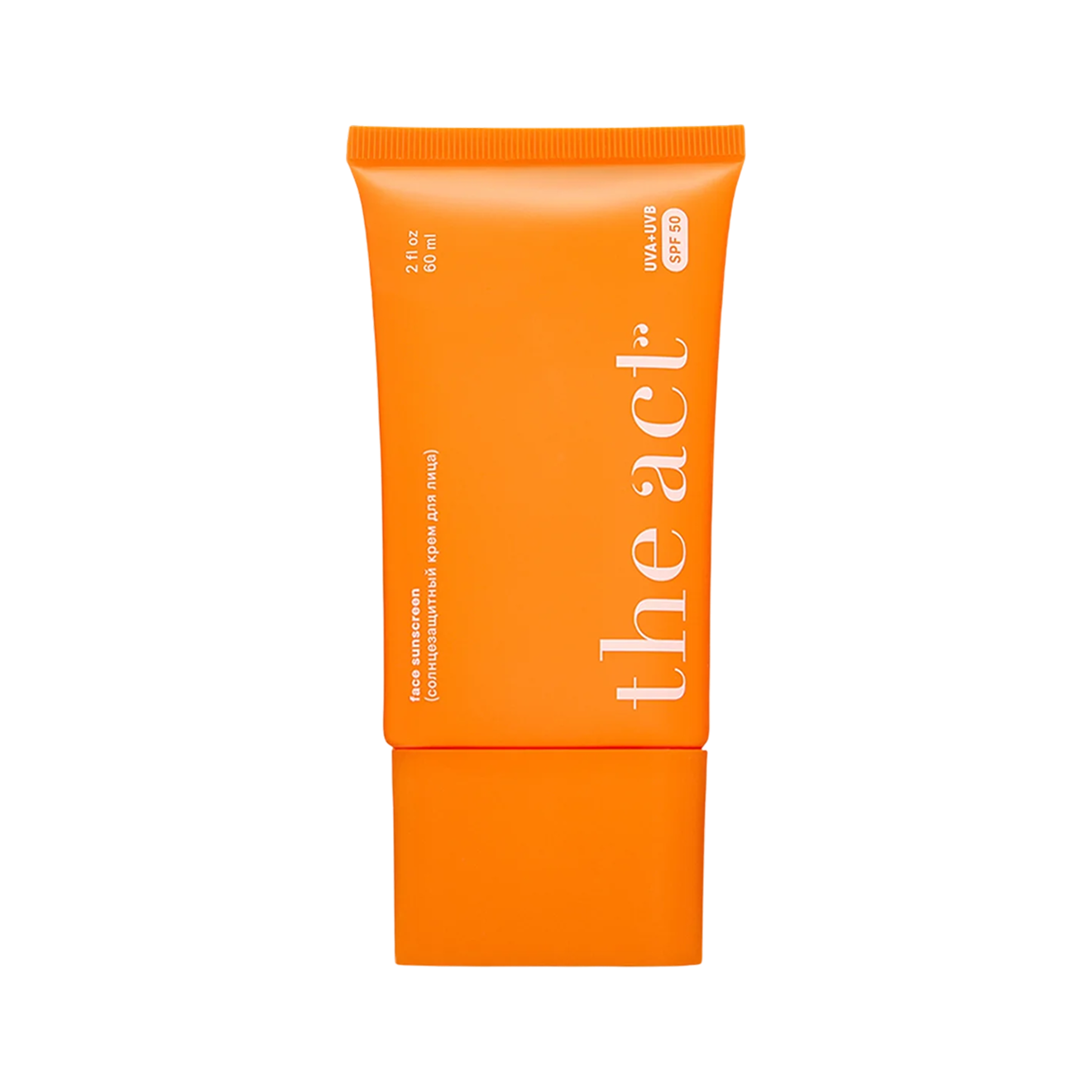 Минималистичный крем без отдушек. Кроме SPF-фильтров в составе есть пробиотики для укрепления кожного барьера, а также антиоксиданты для дополнительной защиты от фотостарения. Это один из первых санскринов The Act, «солнечная» линия появилась у бренда в конце 2025 года