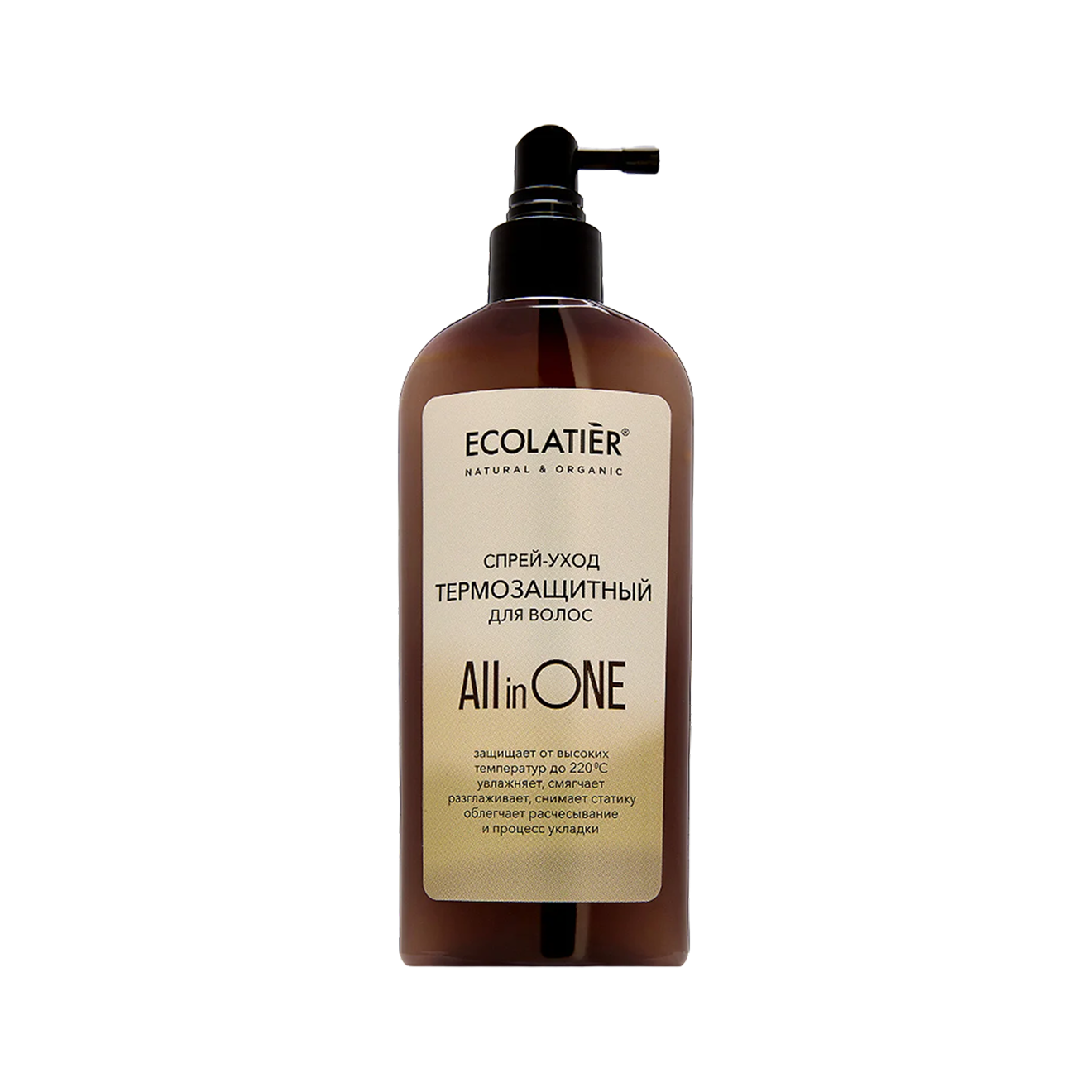 Этот спрей на основе силиконов и компонентов с кондиционирующим эффектом — кератина, коллагена, протеинов и растительных экстрактов, за счет формата он оптимален для волос без сильной сухости и повреждений. Производитель обещает термозащиту до 220 °C, но в первую очередь ориентируйтесь на свои ощущения: иногда спреи бывает трудно нанести на все полотно волос и перед интенсивными горячими укладками удобнее использовать плотные формулы