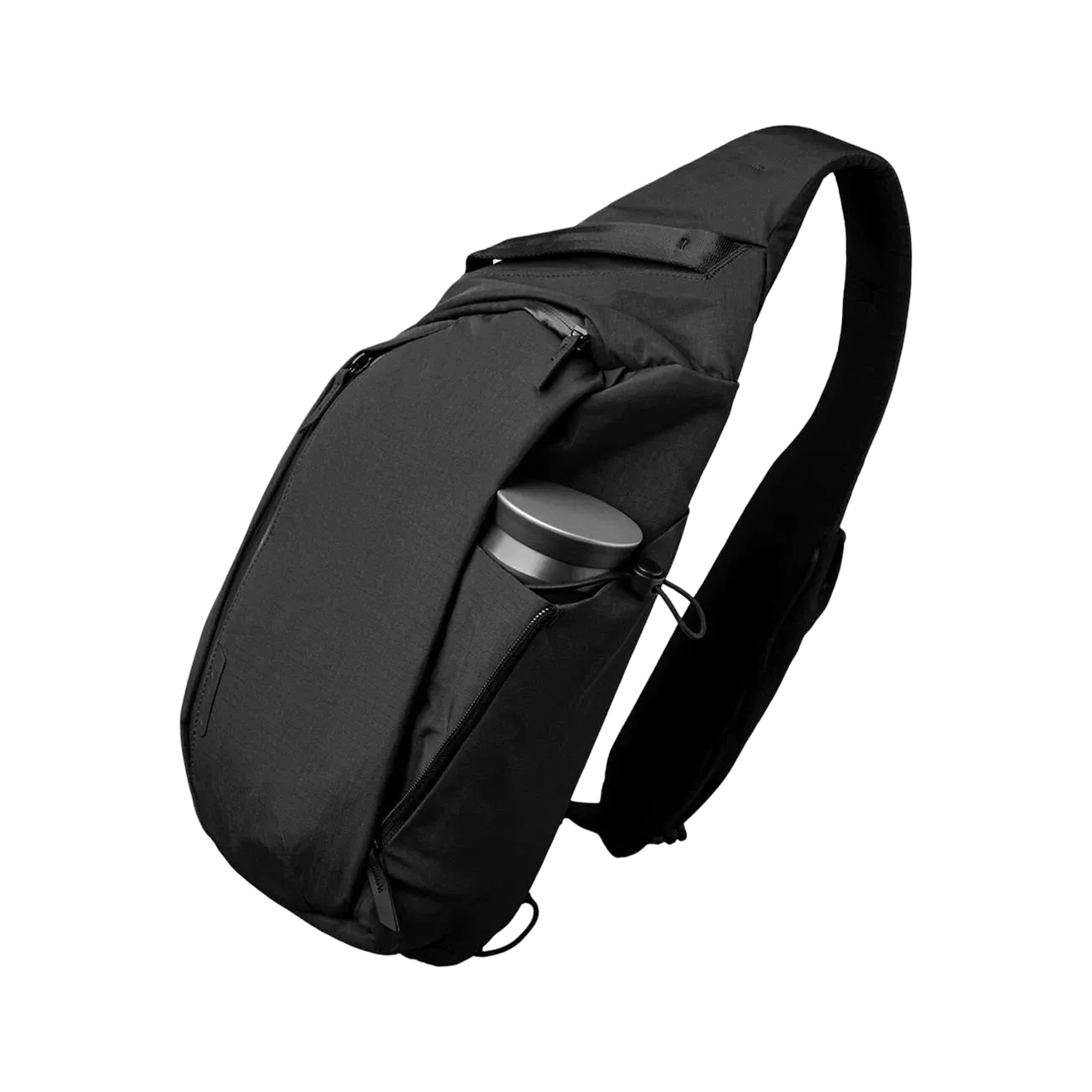 Слинг объемом 7 л, куда помещается iPad Pro 11". Внутри — много мягких перегородок, чтобы техника не билась друг о друга. Ремень оснащен механизмом быстрой регулировки — можно затянуть сумку плотно к спине во время езды на велосипеде и расслабить за секунду в магазине