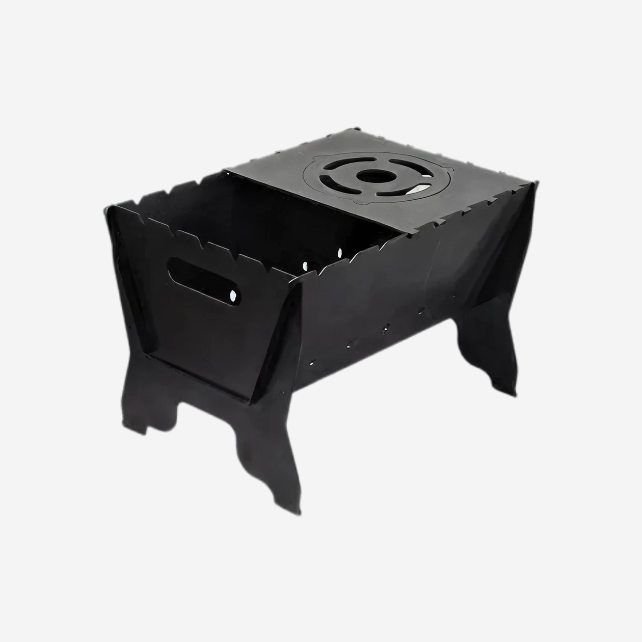 Как и у предыдущей модели, в комплекте идет подказанник, который можно использовать как боковую полку. Кроме того, здесь есть ручки и отверстия для притока воздуха к углям.