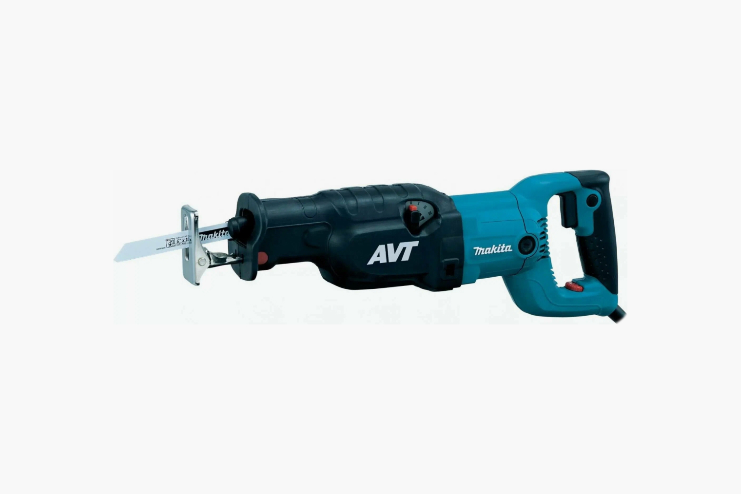Пила поставляется в классическом неубиваемом макитовском кейсе, в комплекте — три фирменных ножовочных полотна хорошего качества. Шнур — 2,5 м, с двойной изоляцией.