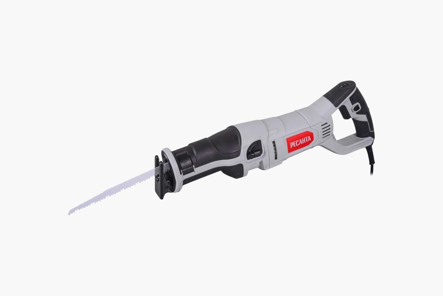 Такую пилку я характеризую как вариант «относительно недорого и сердито». Мощность — 1 400 Вт, есть маятниковый ход. Режет дерево до 250 мм и металл до 20 мм. Масса — 3,1 кг, кабель — около 2 м.
